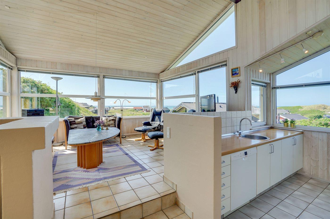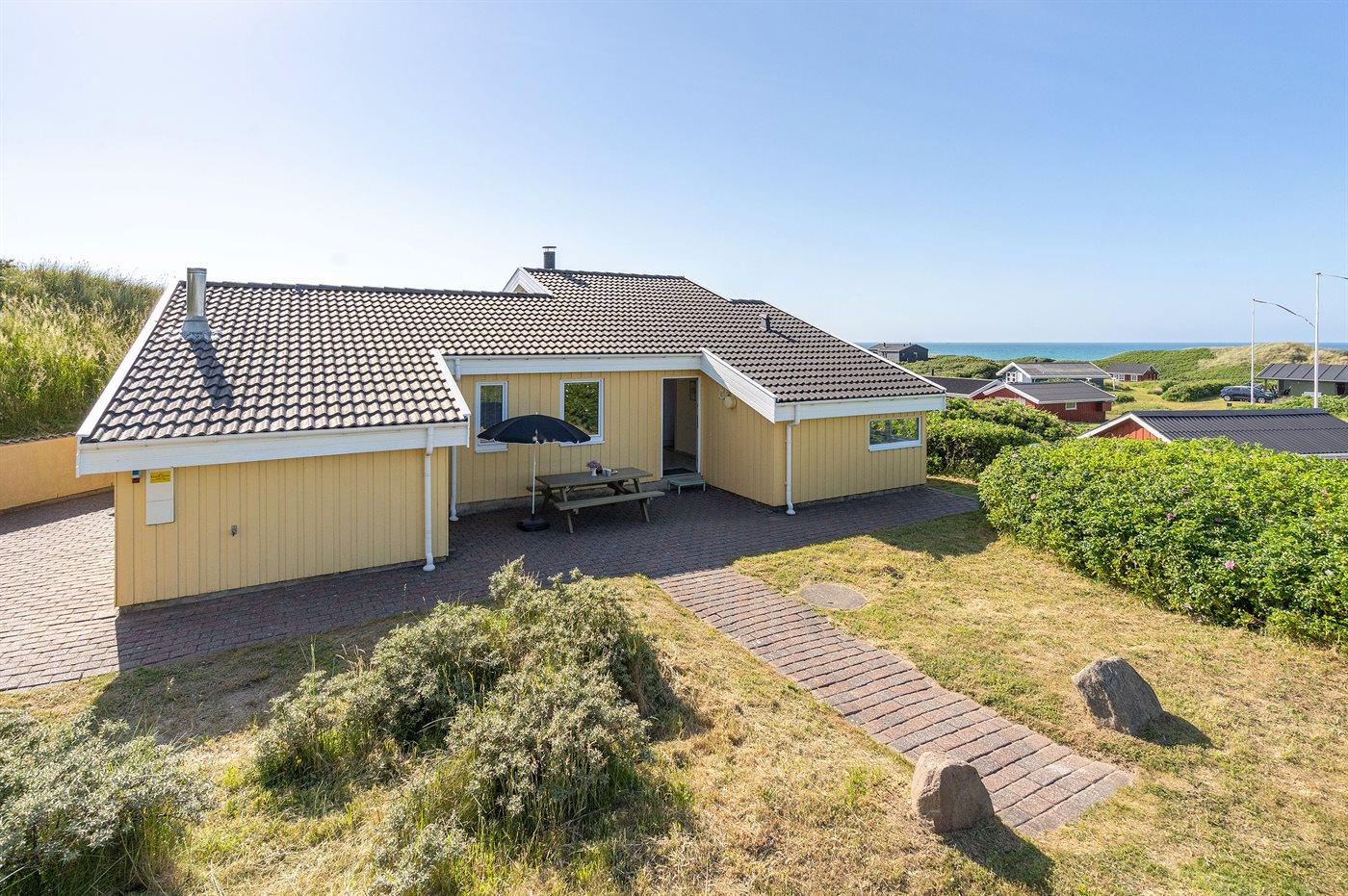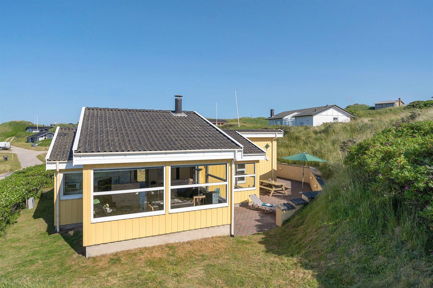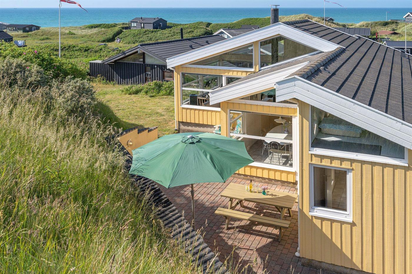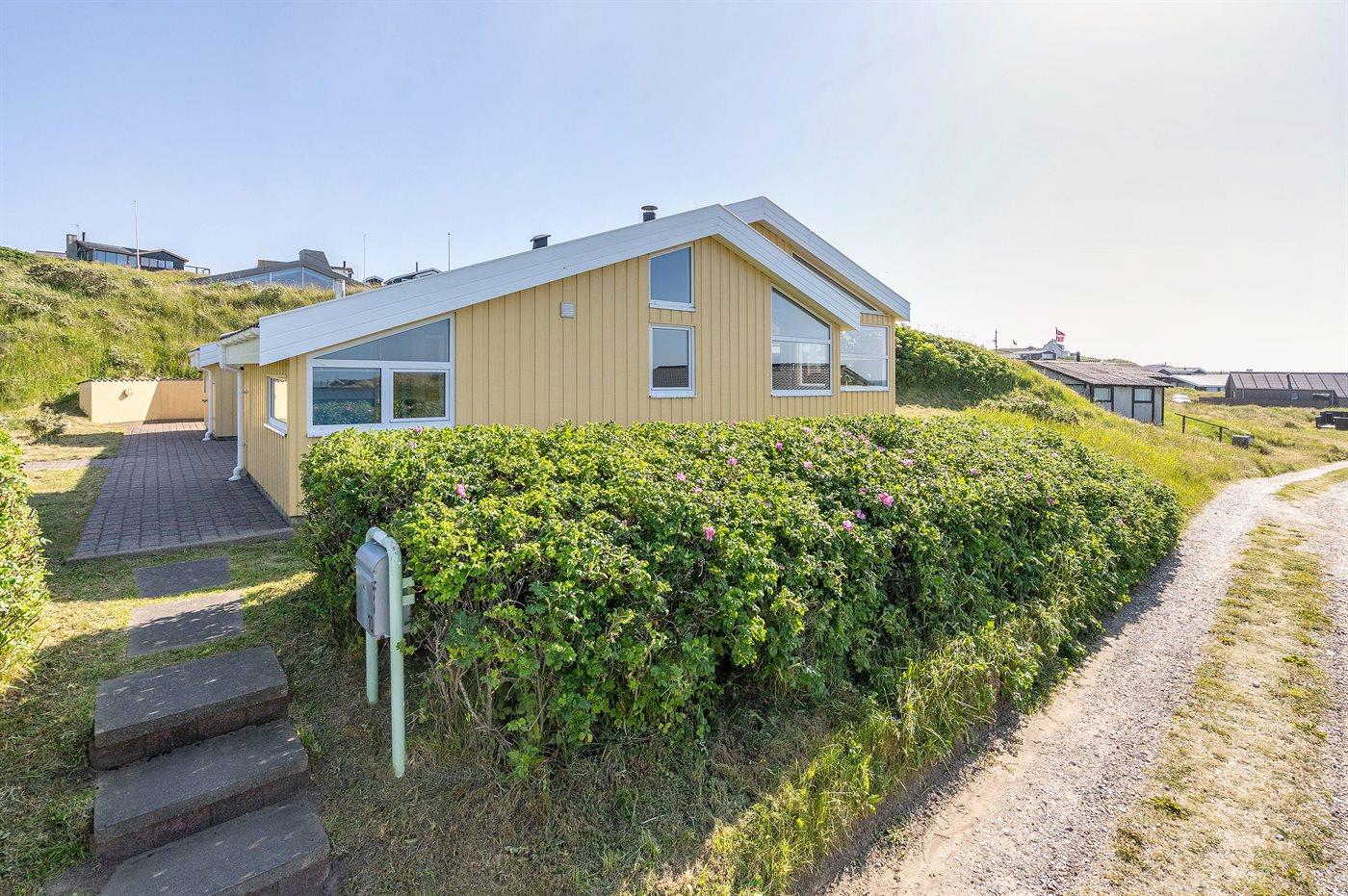 Dette arkitekttegnede sommerhus ligger i klitterne med udsigt over Vesterhavet, og tæt på den dejlige badestrand og feriecentret Skallerup Seaside Resort. Sommerhuset fremtræder udvendigt i 3 forskudte tagniveauer og indvendigt blandt andet med en opholdsstue i forhøjet niveau og med panoramaudsigt over Vesterhavet. Bemærk: De 2 sovepladser på madrasser befinder sig på husets hems.