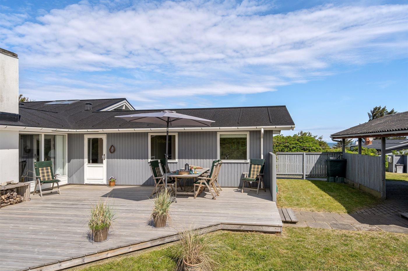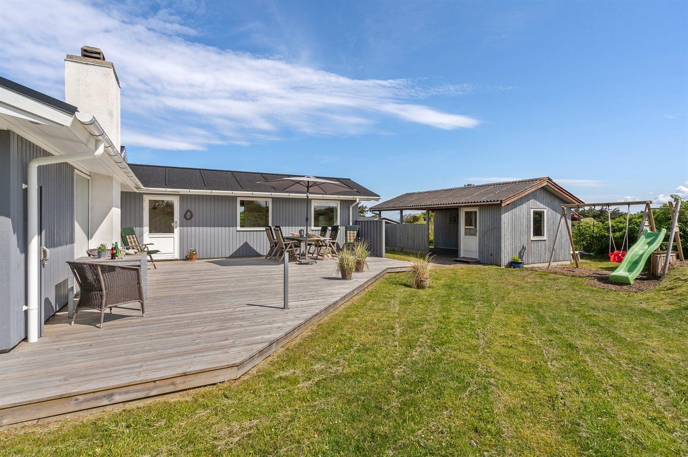 Ferieboligen er beliggende på en 2660 m² stor naturgrund. Der er 350 m til havet. Nærmeste forretning er beliggende i en afstand af 900 m. Der er en golfbane i en afstand af 4000 m. Til ferieboligen hører 40 m² terrasseareal. Der er redskabsrum. Gynge. Rutchebane. Grill til rådighed. Der er carport til rådighed. Parkering ved ferieboligen.