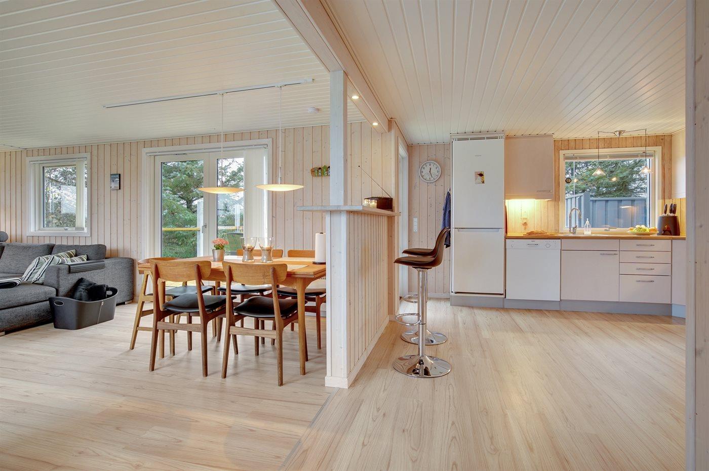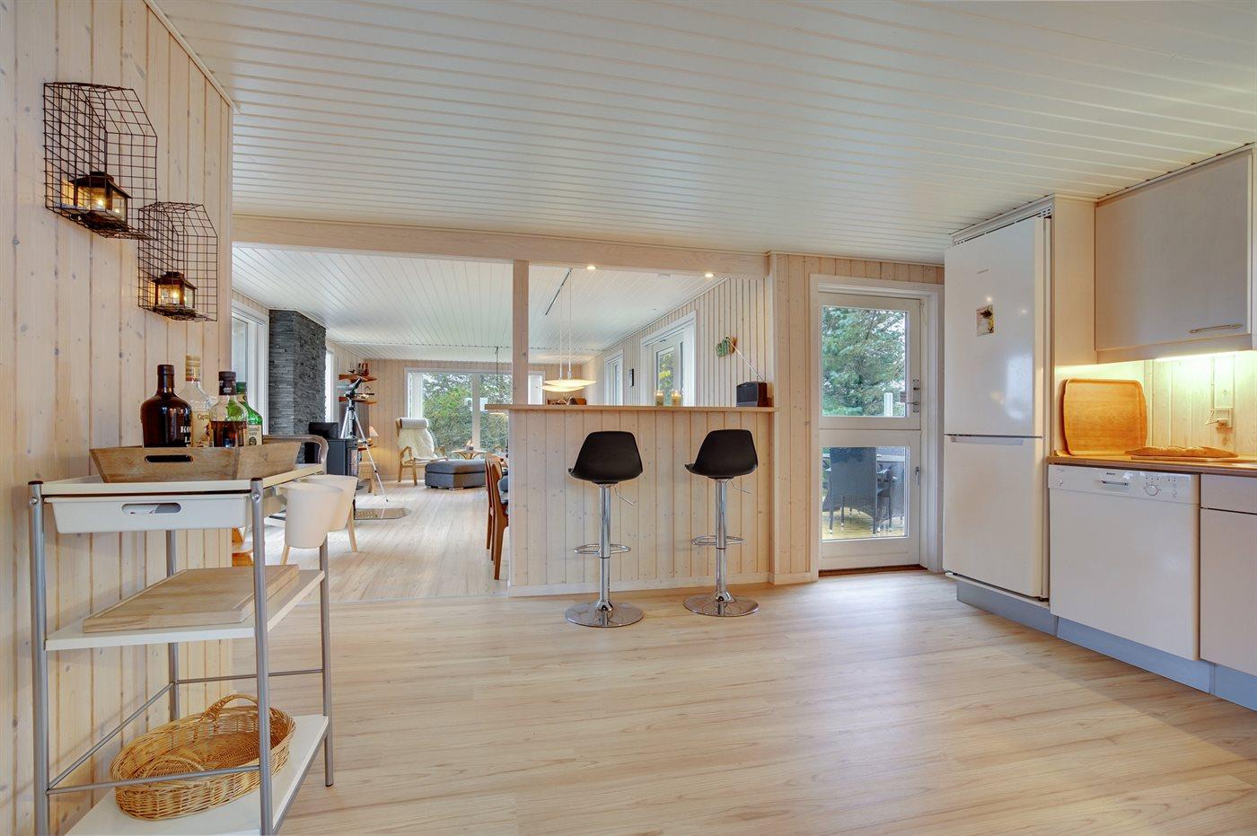 Køkkenet er udstyret med 1 køleskab. Der er 4 keramiske kogeplader, varmluftovn, mikrobølgeovn samt opvaskemaskine.