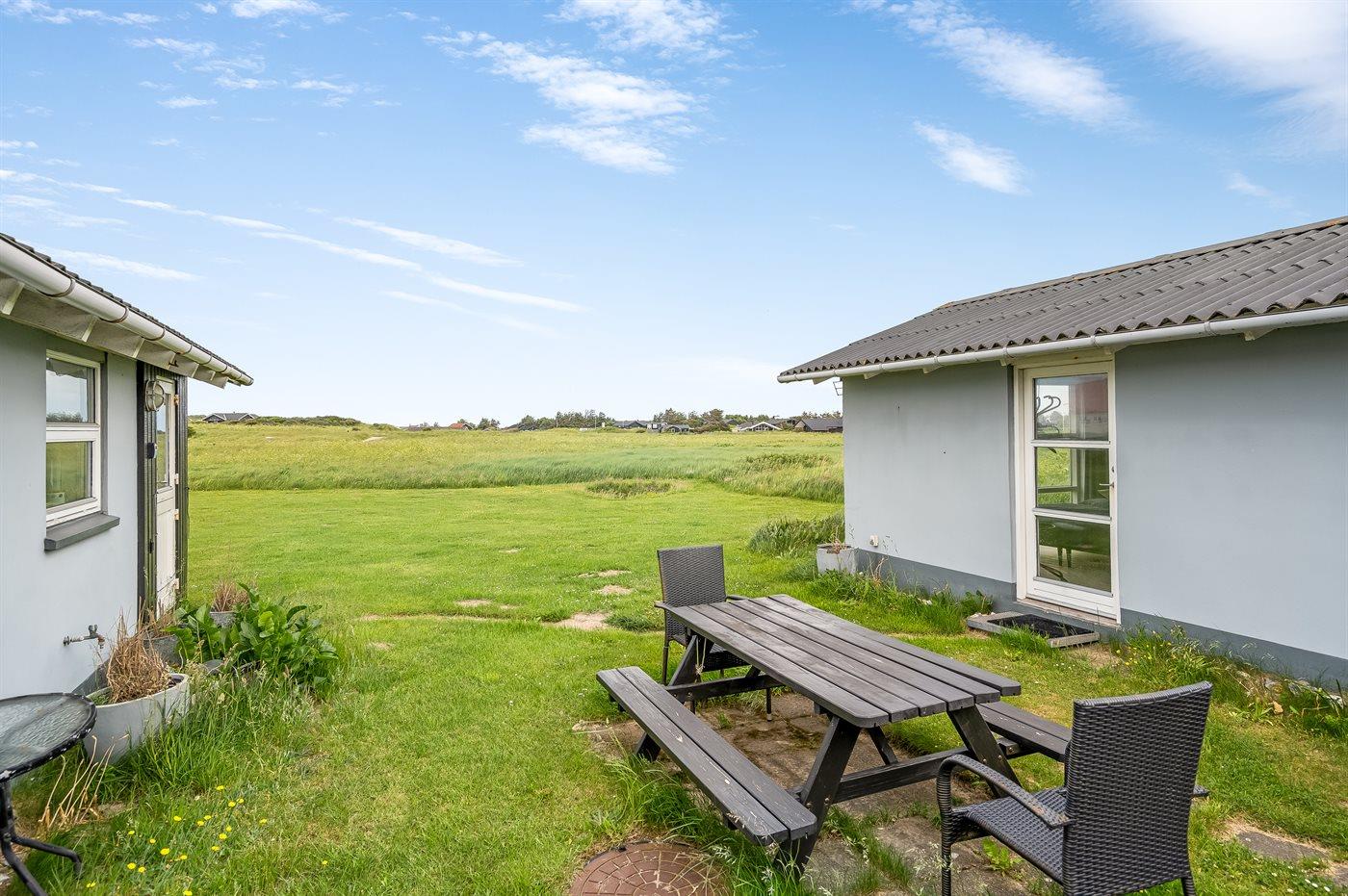 Ferieboligen er beliggende på en 5000 m² stor naturgrund. Der er 410 m til havet. Nærmeste forretning er beliggende i en afstand af 500 m. Til ferieboligen hører 40 m² terrasseareal. Desuden er der 10 m² overdækket terrasse. Grill til rådighed. Parkering ved ferieboligen.