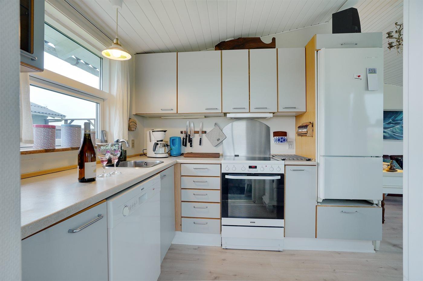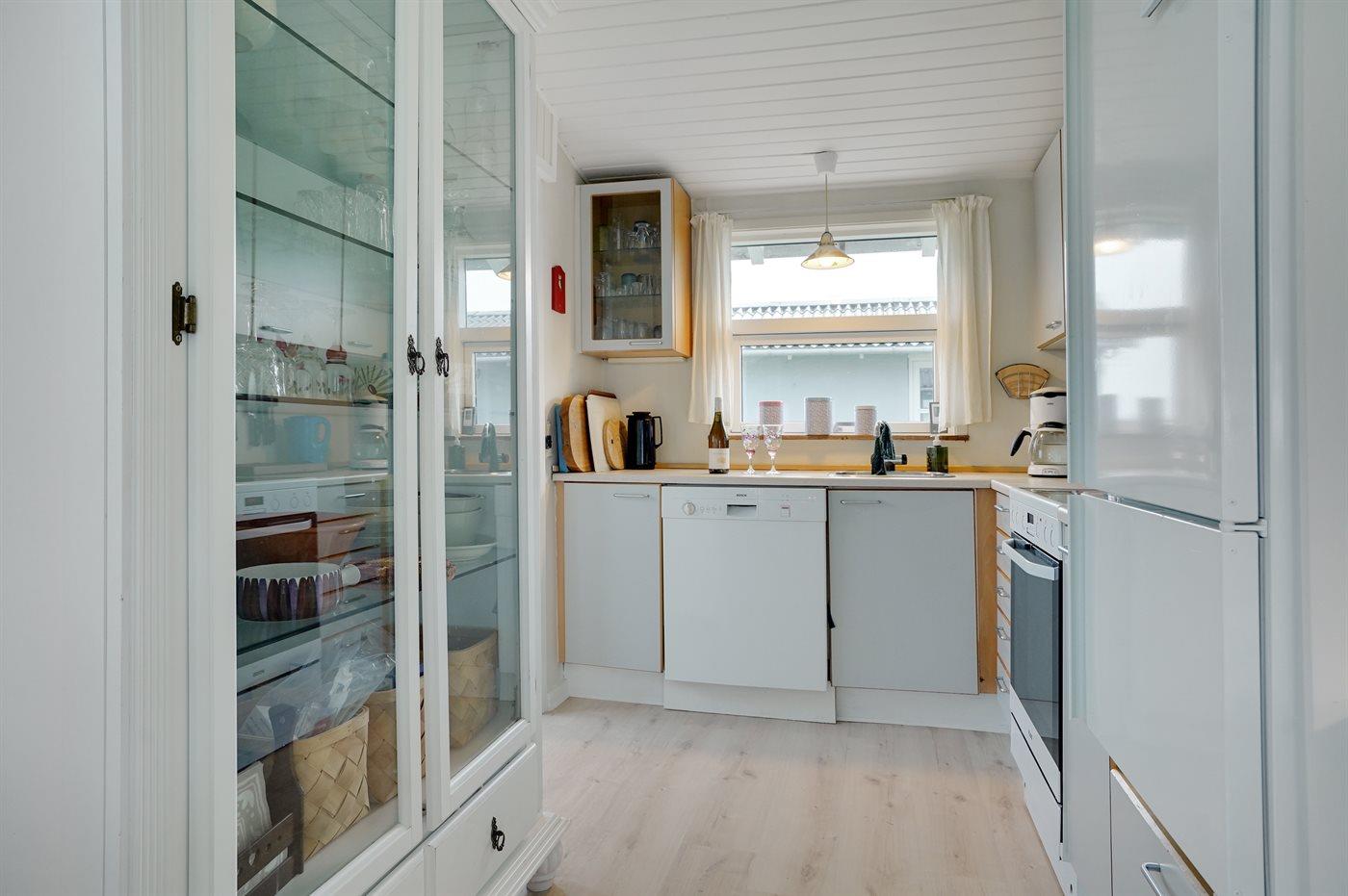 Køkkenet er udstyret med 1 køleskab. Der er 4 keramiske kogeplader, miniovn, varmluftovn, mikrobølgeovn samt opvaskemaskine.