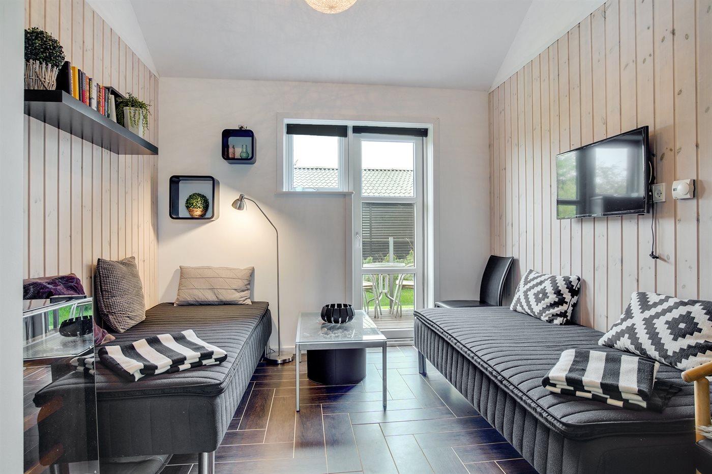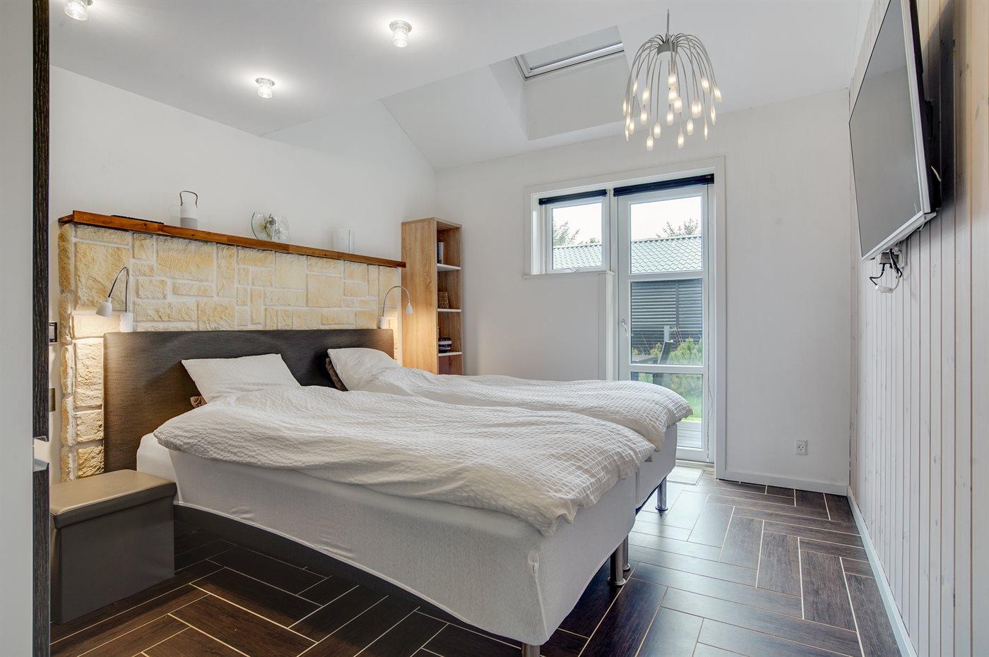 Der er i alt 3 soveværelser. Sovepladserne fordeler sig på: 4 sovepladser i dobbeltsenge. 2 sovepladser i enkeltsenge.