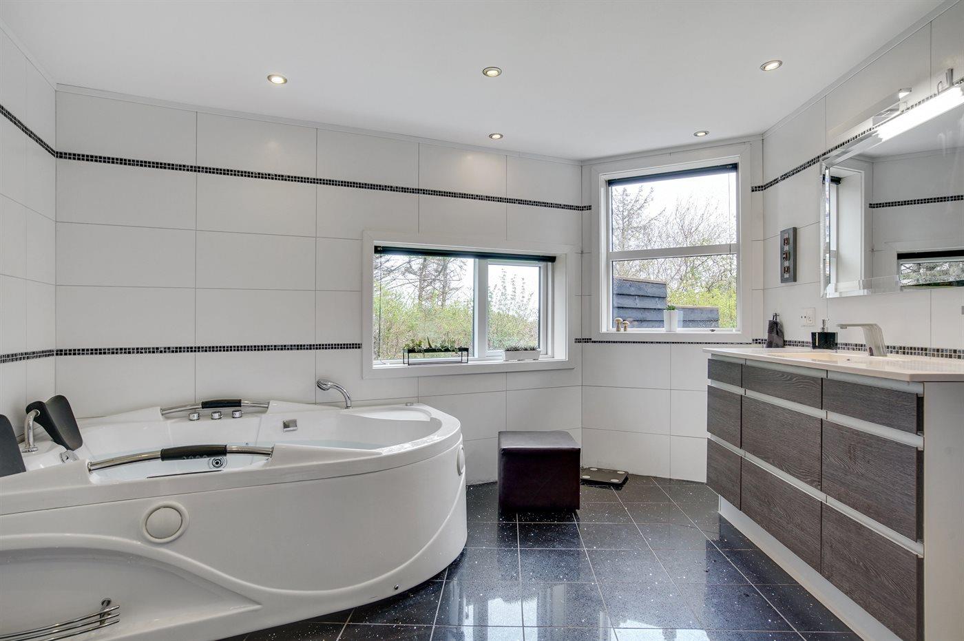 Der er 2 badeværelser med bruseniche og 2 toiletter. Der er gulvvarme på 2 badeværelser.