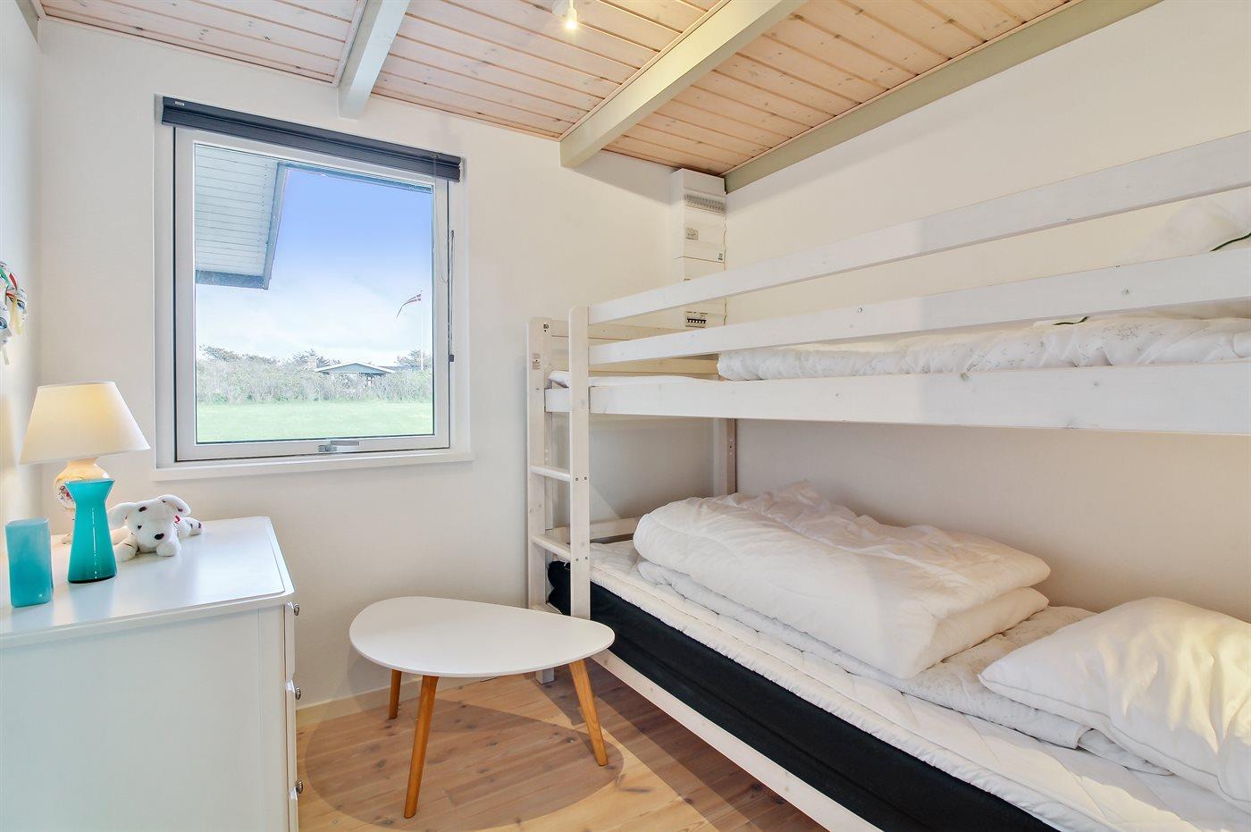 Der er i alt 3 soveværelser. Sovepladserne fordeler sig på: 2 sovepladser i dobbeltseng. 2 sovepladser i køjeseng.2 sovepladser i elevationssenge. Derudover er der 1 stk. barneseng.