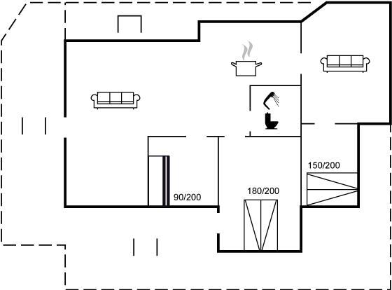Køkkenet er udstyret med 1 køleskab. Der er 4 induktionskogeplader, varmluftovn, mikrobølgeovn samt opvaskemaskine.
