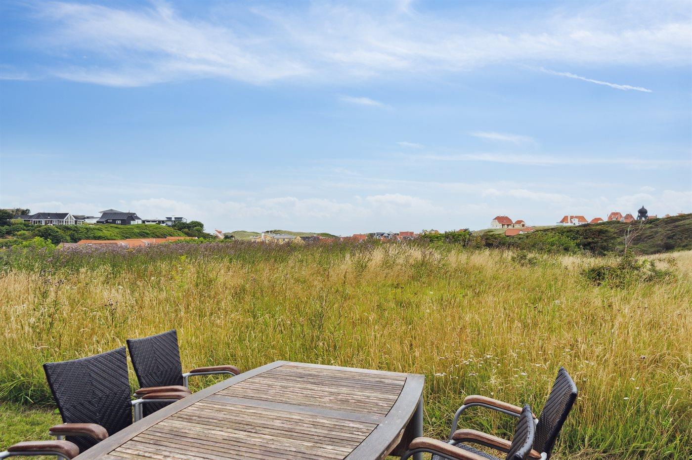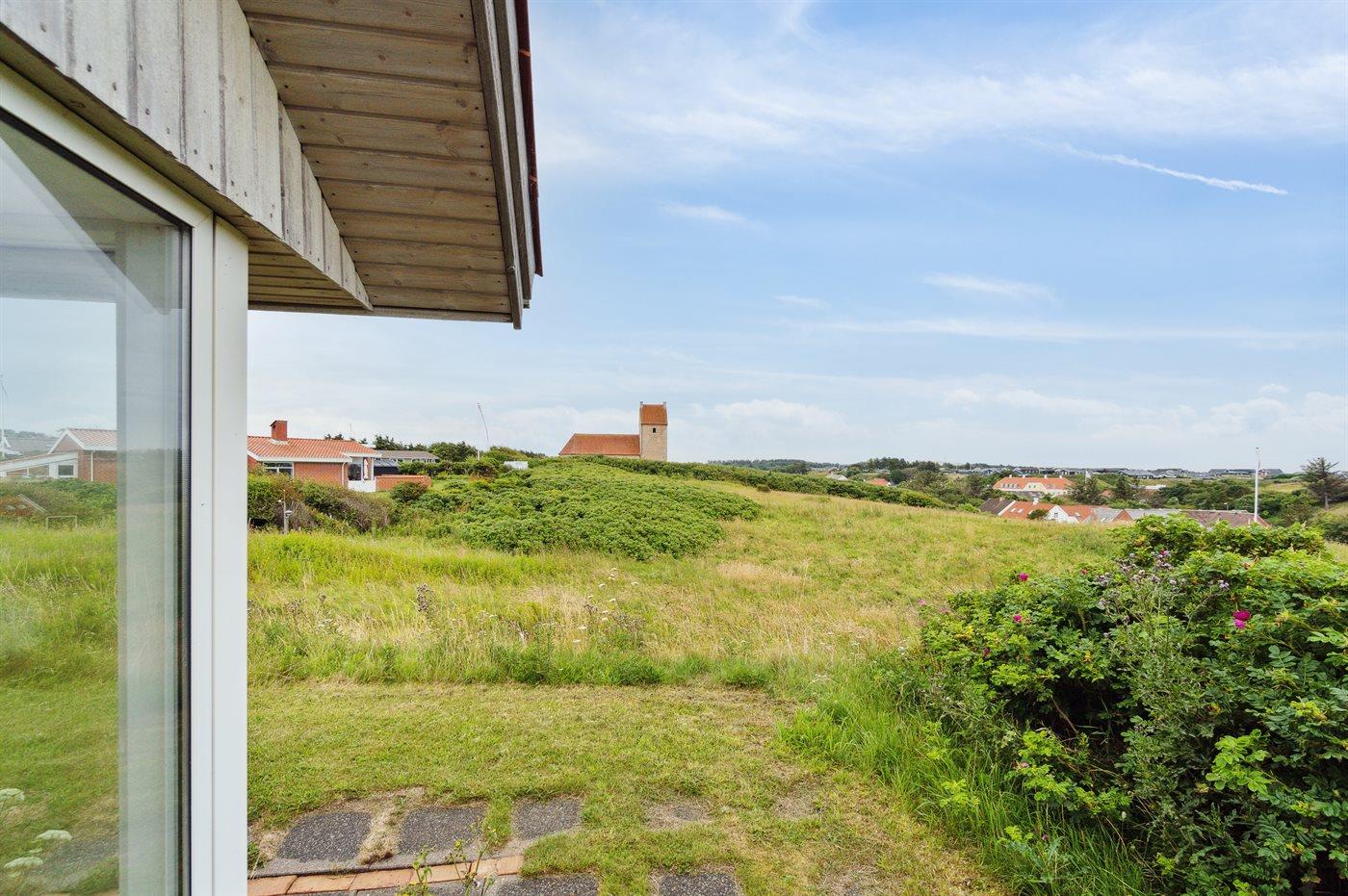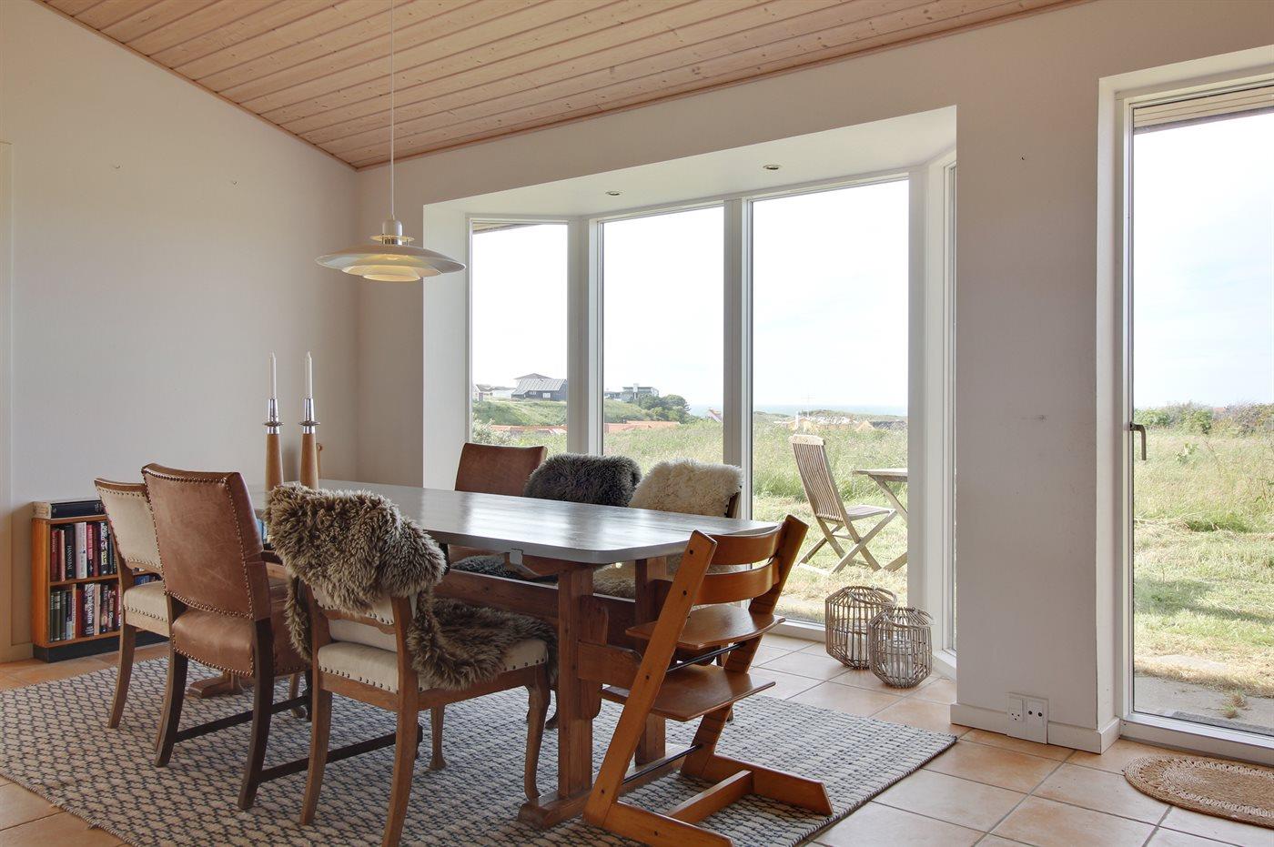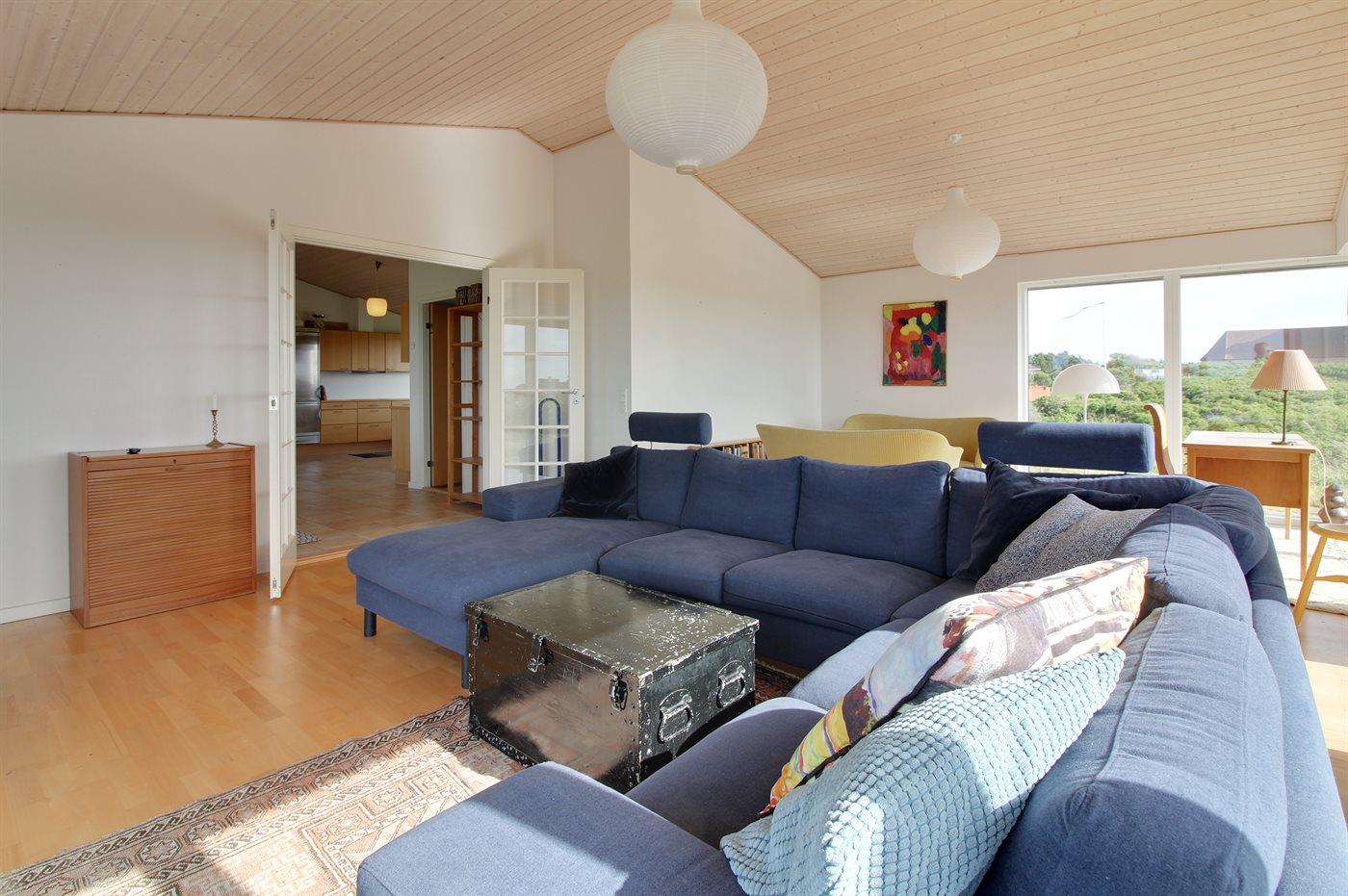 Højt beliggende sommerhus i Lønstrup med fantastisk udsigt både til Vesterhavet og til Rubjerg Knude. Her kan man nyde udsigten både fra terrassen og fra stuen.