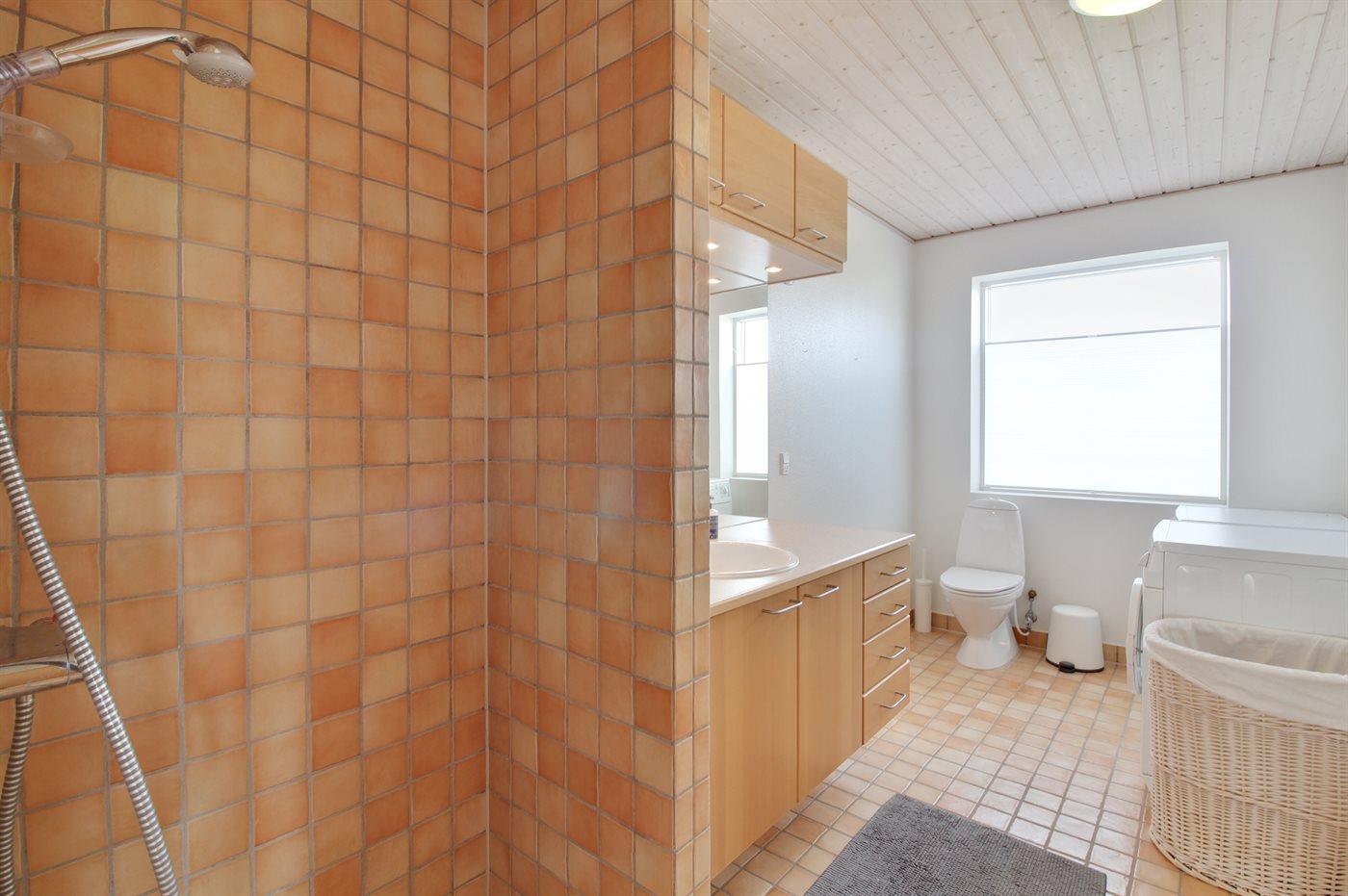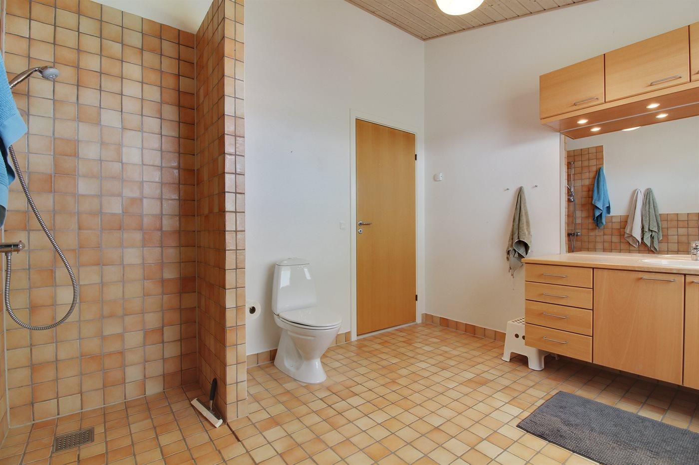 Der er 2 badeværelser med bruseniche og 2 toiletter. Der er gulvvarme på 2 badeværelser.