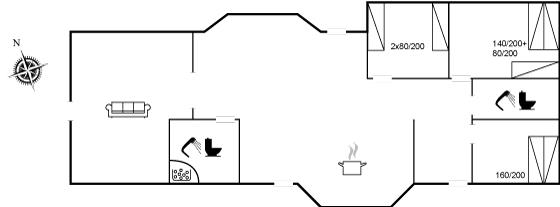 Sommerhuset egner sig til 7 personer. Ferieboligen er på 160 m² og er bygget i 2004. Det er tilladt at medbringe 1 husdyr. Hele ferieboligen har gulvvarme. Ferieboligen har vaskemaskine. Tørretumbler. Frysekapacitet på 60 liter. Til de små er der 1 stk. barnestol.