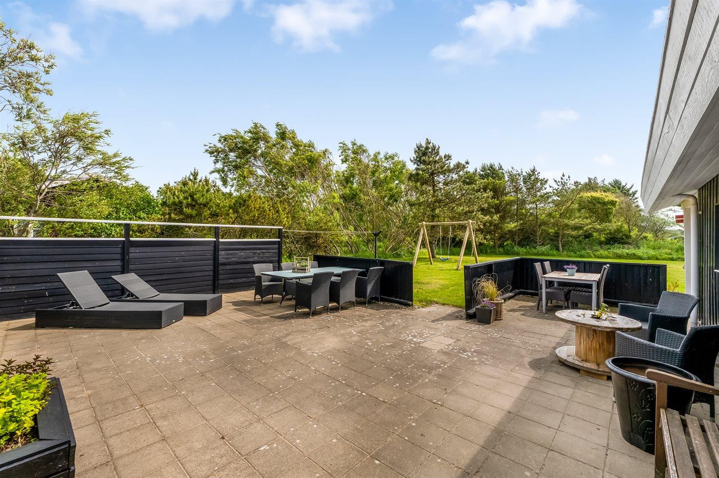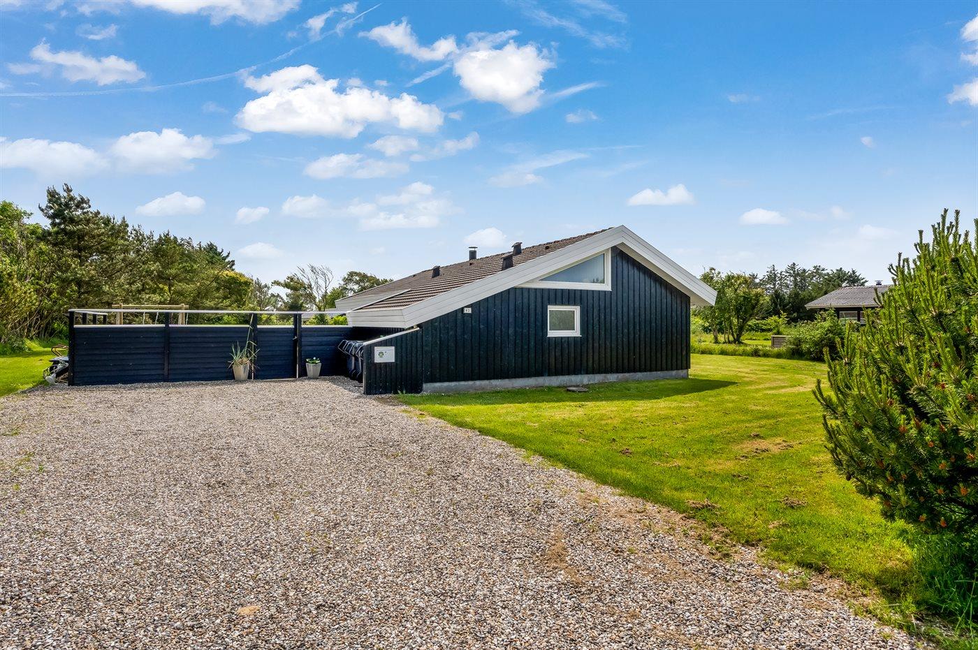 Ferieboligen er beliggende på en 1489 m² stor naturgrund. Der er 800 m til havet. Nærmeste forretning er beliggende i en afstand af 900 m. Til ferieboligen hører åbent terrasseareal. Desuden er der overdækket terrasse. Der er redskabsrum. Gynge. Grill til rådighed. Parkering ved ferieboligen.