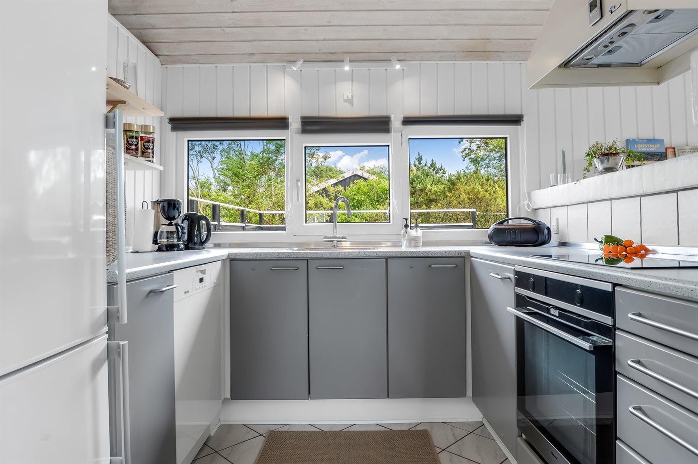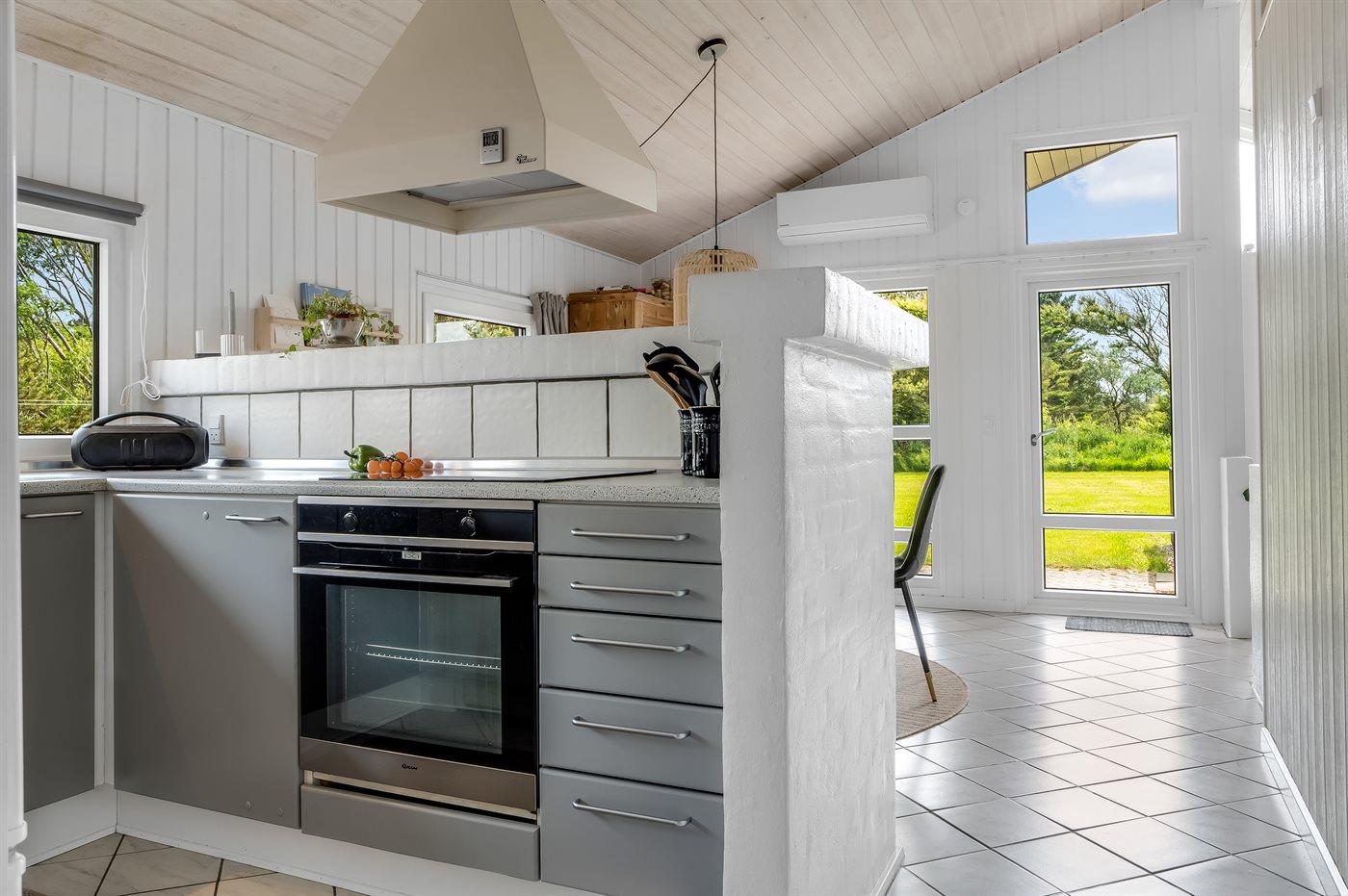 Køkkenet er udstyret med 1 køleskab. Der er 4 induktionskogeplader, varmluftovn, mikrobølgeovn samt opvaskemaskine.