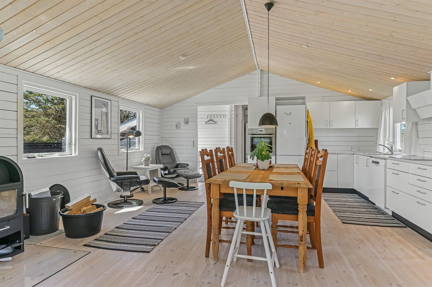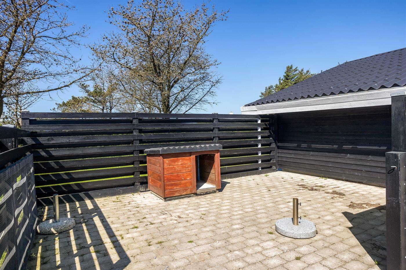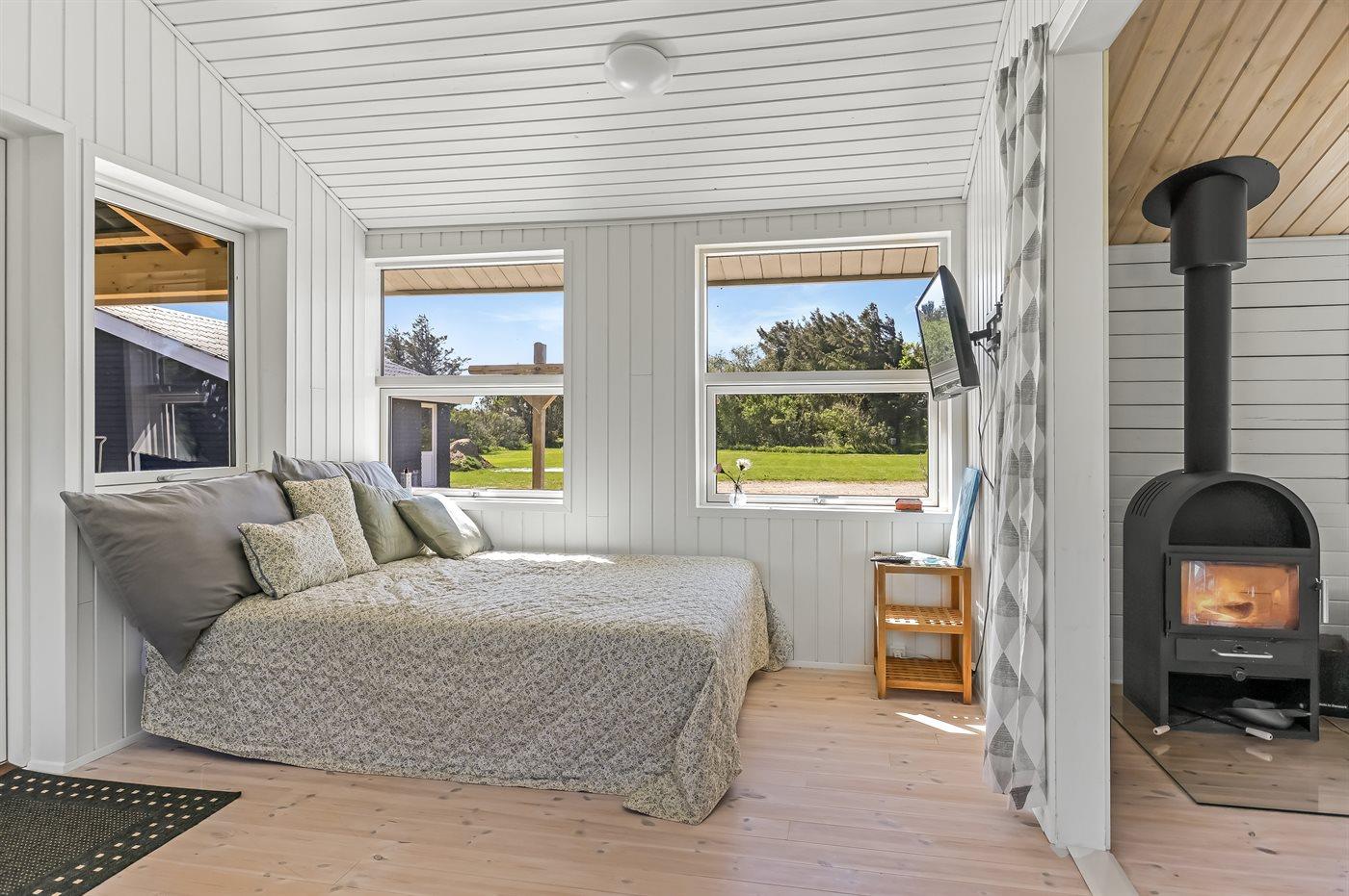 Ferieboligen er beliggende på en 2500 m² stor naturgrund. Der er 500 m til havet. Nærmeste forretning er beliggende i en afstand af 900 m. Til ferieboligen hører delvist lukket terrasse. Der er redskabsrum. Trampolin. Grill til rådighed. Der er installeret stik til opladning af elbil. Med 9 kW ladeeffekt. Parkering ved ferieboligen.