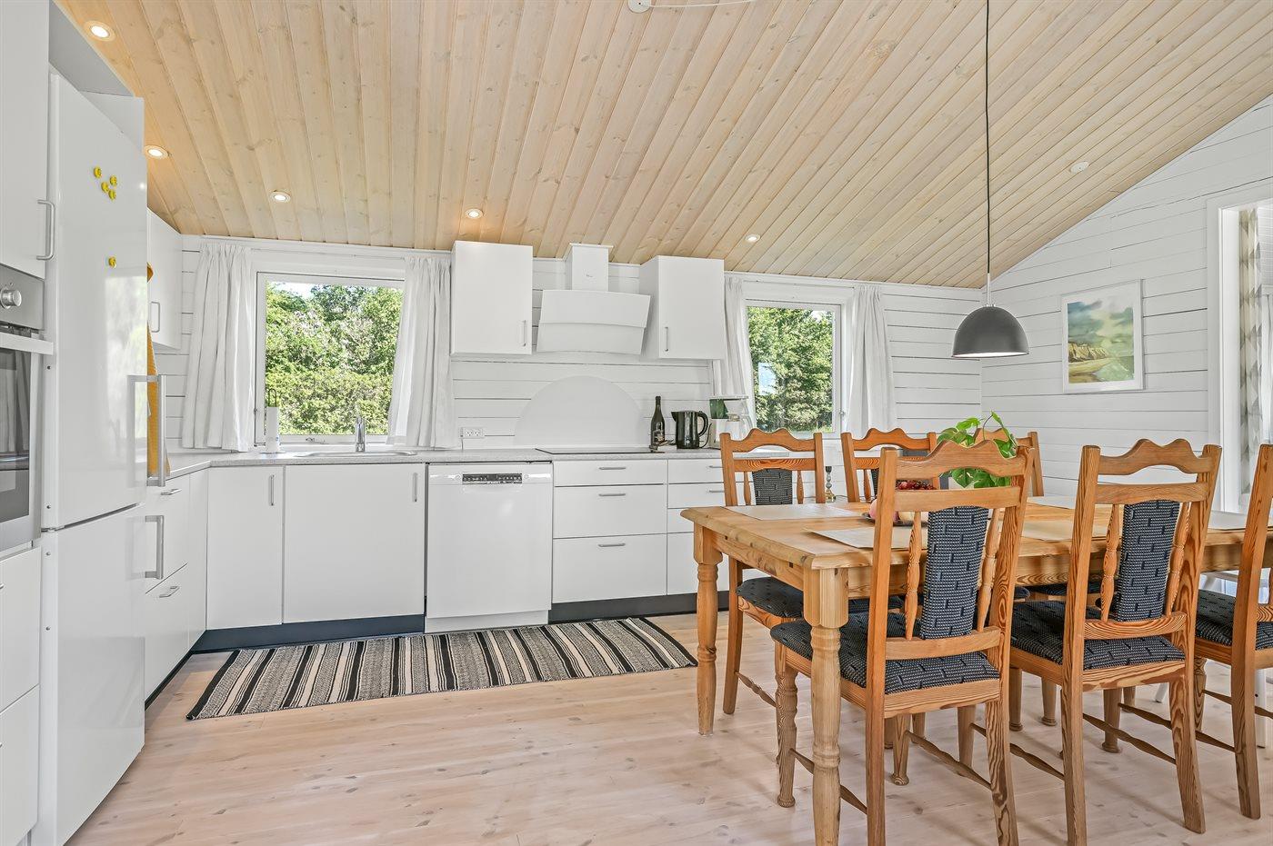 Køkkenet er udstyret med 1 køleskab. Der er 4 induktionskogeplader, varmluftovn, mikrobølgeovn samt opvaskemaskine.