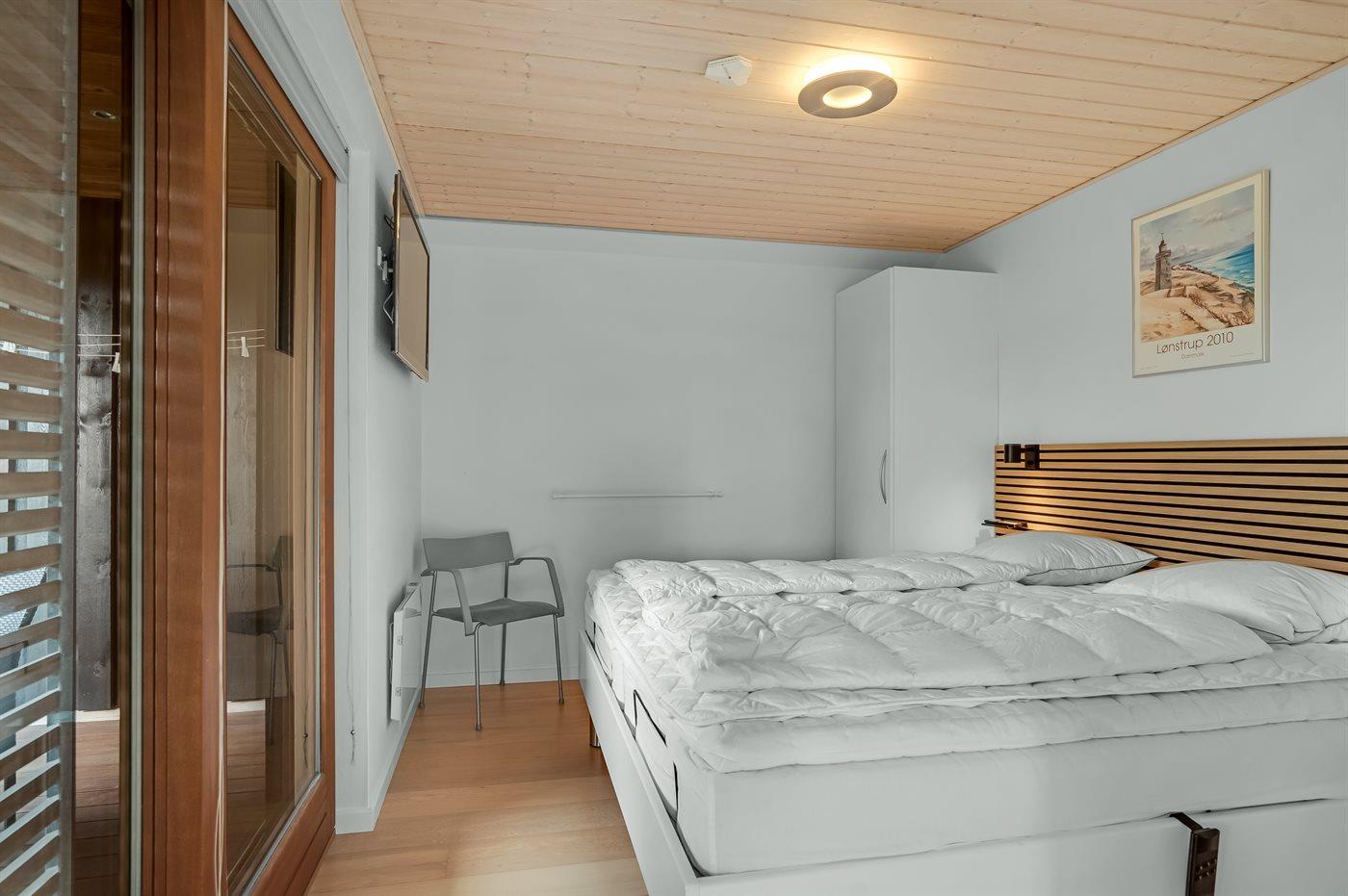 Der er i alt 3 soveværelser. Sovepladserne fordeler sig på: 4 sovepladser i dobbeltsenge.2 sovepladser i elevationssenge.
