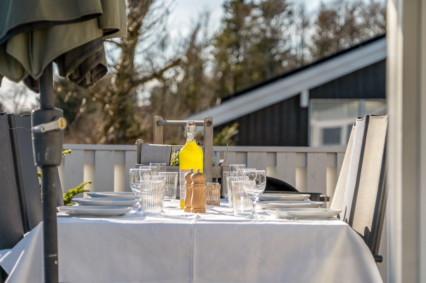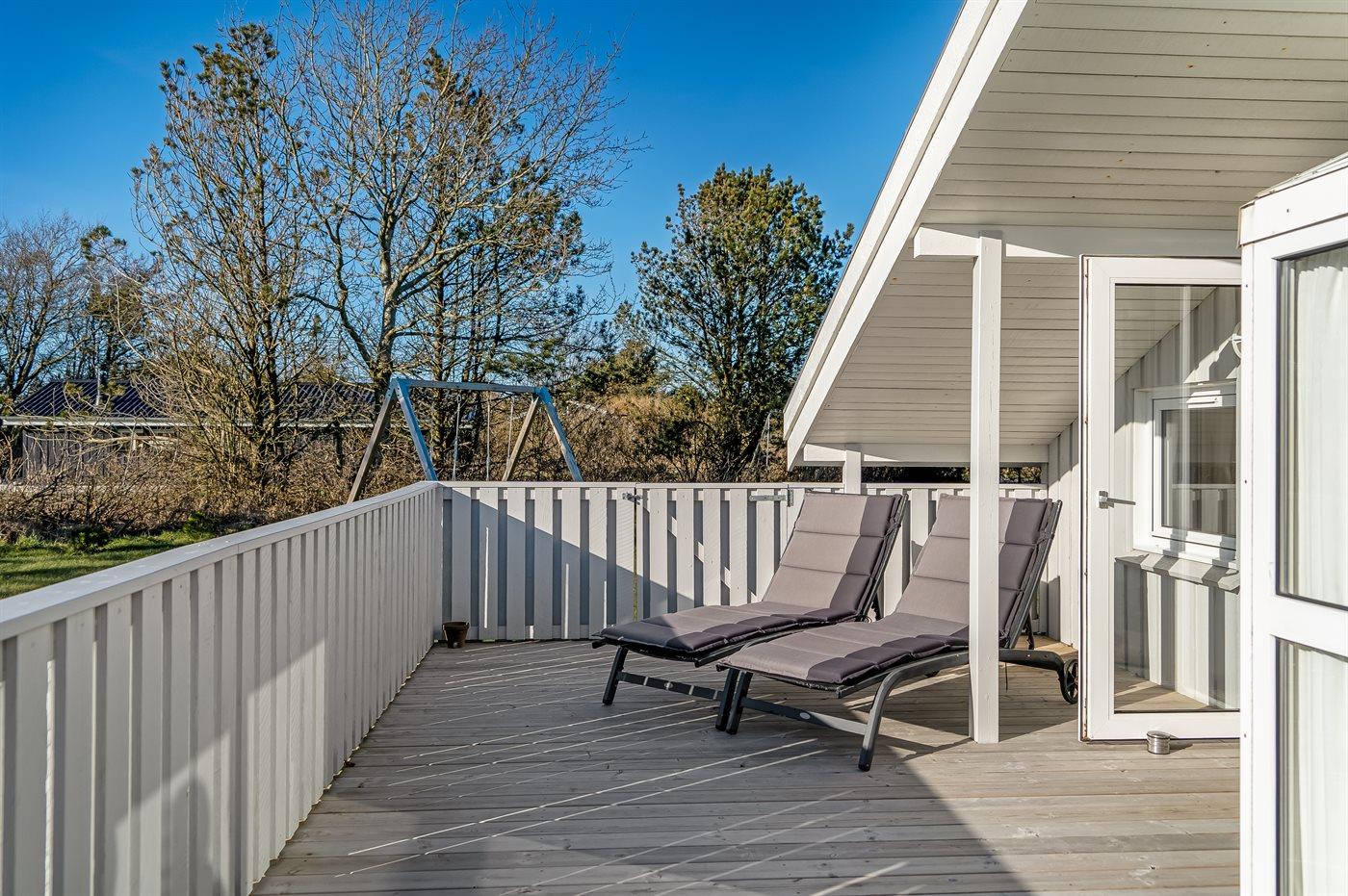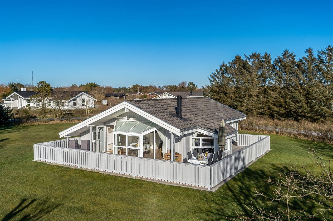 Ferieboligen er beliggende på en 1399 m² stor naturgrund. Der er 1200 m til havet. Til ferieboligen hører åbent terrasseareal. Desuden er der overdækket terrasse. Der er redskabsrum. Gynge. Sandkasse. Fodboldmål. Grill til rådighed. Der er installeret stik til opladning af elbil. Parkering ved ferieboligen.