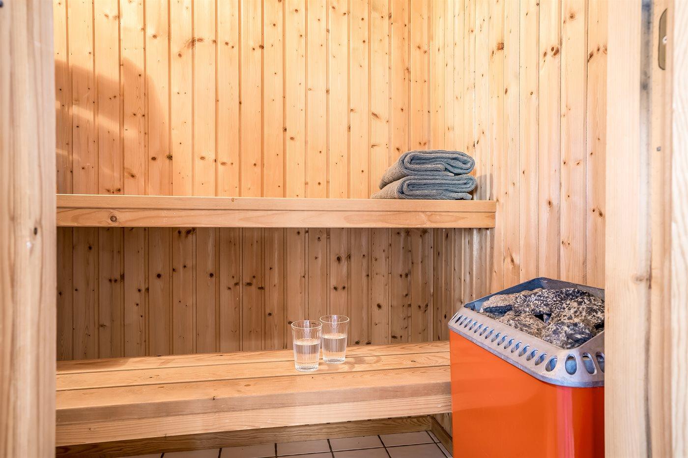 Der er 1 badeværelse med gulvvarme, bruseniche, badekar og toilet. I saunaen er der mulighed for afslapning.