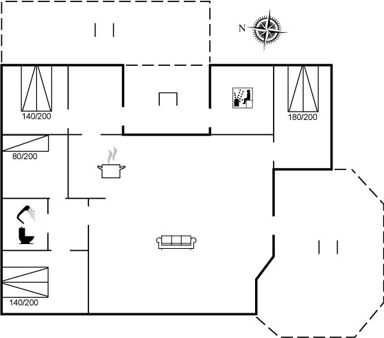 Der er i alt 4 soveværelser. Sovepladserne fordeler sig på: 6 sovepladser i dobbeltsenge. 1 soveplads i enkeltseng.