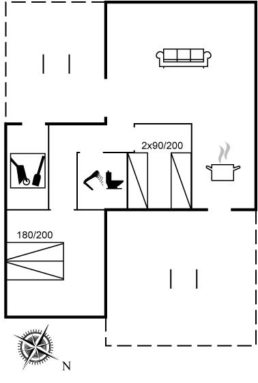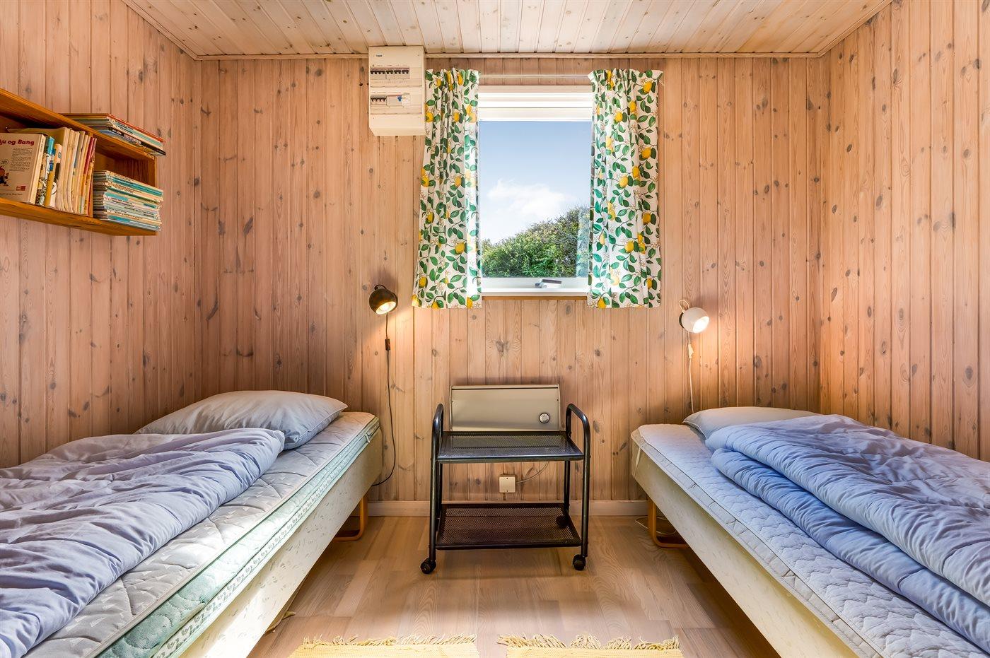 Der er i alt 2 soveværelser. Sovepladserne fordeler sig på: 2 sovepladser i dobbeltseng. 2 sovepladser i enkeltsenge.