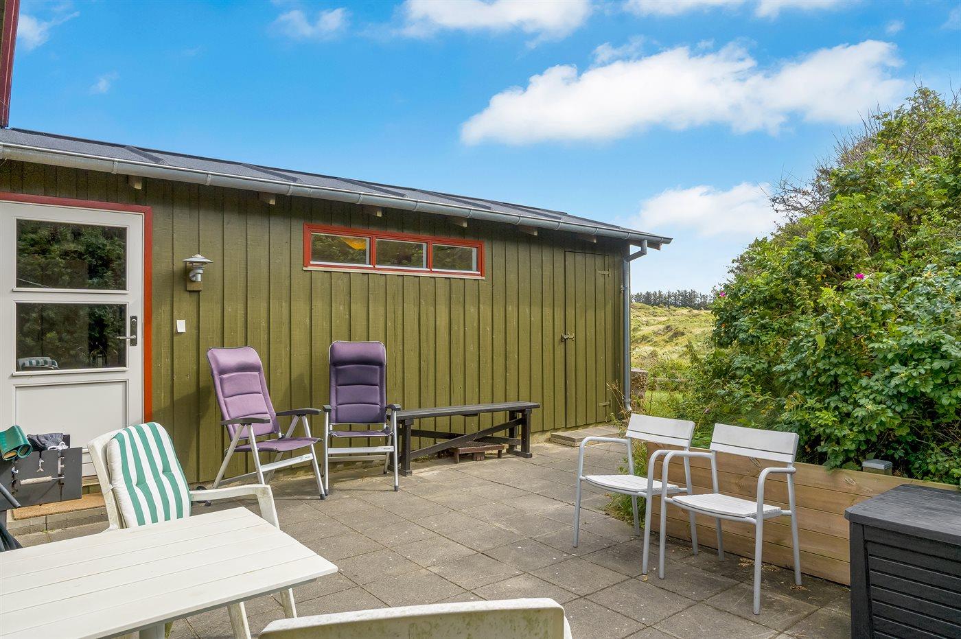 Ferieboligen er beliggende på en 3450 m² stor naturgrund. Der er 500 m til havet. Nærmeste forretning er beliggende i en afstand af 1900 m. Til ferieboligen hører åbent terrasseareal. Desuden er der overdækket terrasse. Grill til rådighed. Parkering ved ferieboligen.