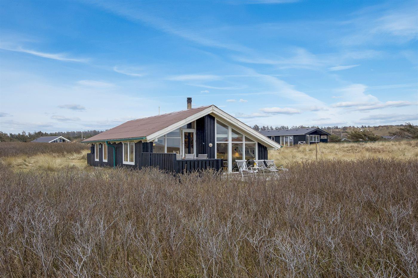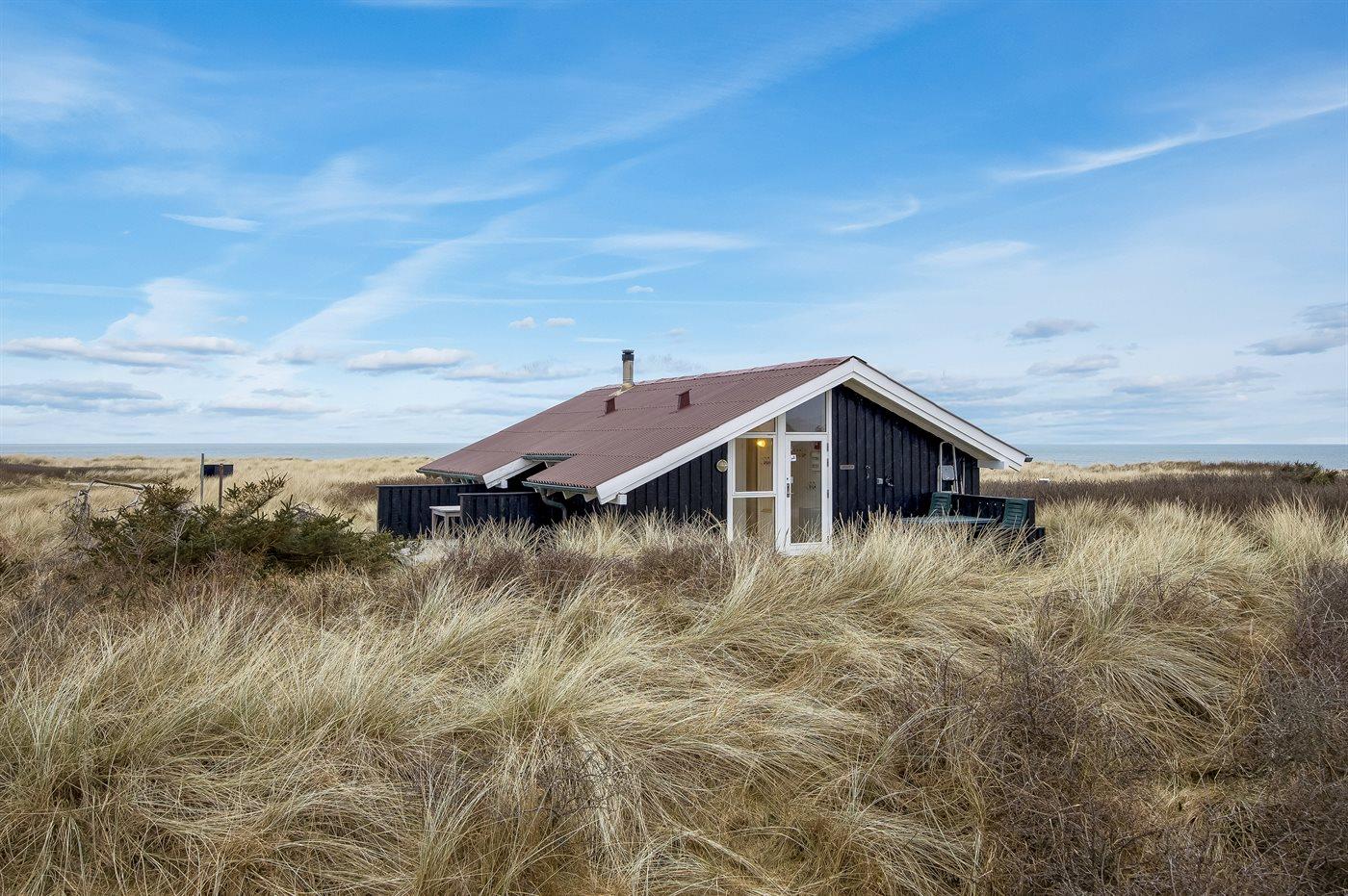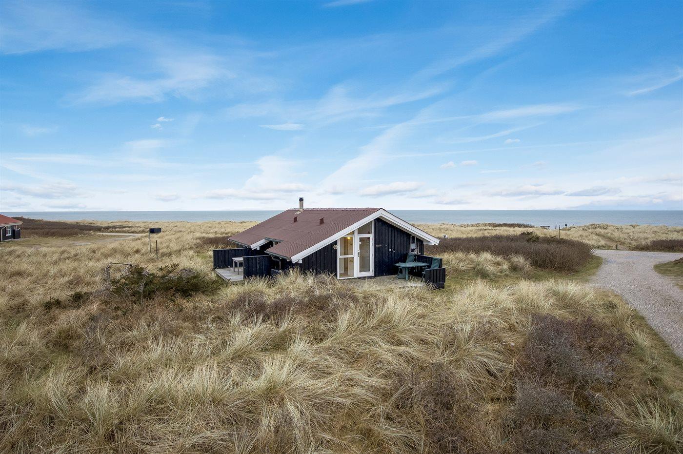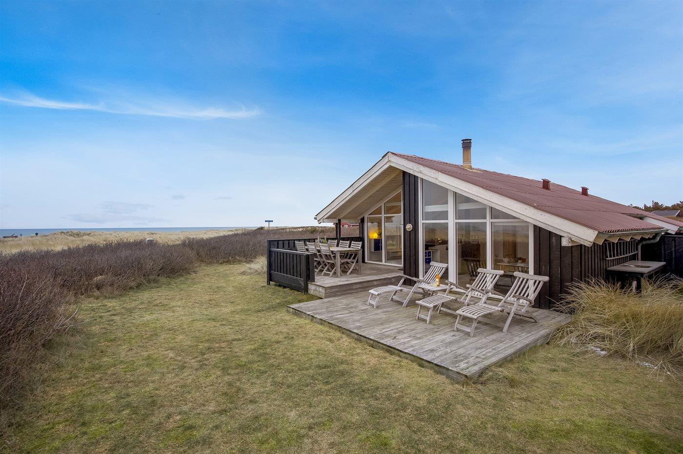 Fantastisk beliggende sommerhus med unik havudsigt over Vesterhavet fra både hus og grund. Dejlige terrasser rundt om huset. Fra feriehuset er der kun en kort cykeltur ind til hyggelige Lønstrup eller Skallerup Seaside, og der er kun et stenkast til den dejlige badestrand. Her er mulighed for gåture med hundene i den flotte natur.