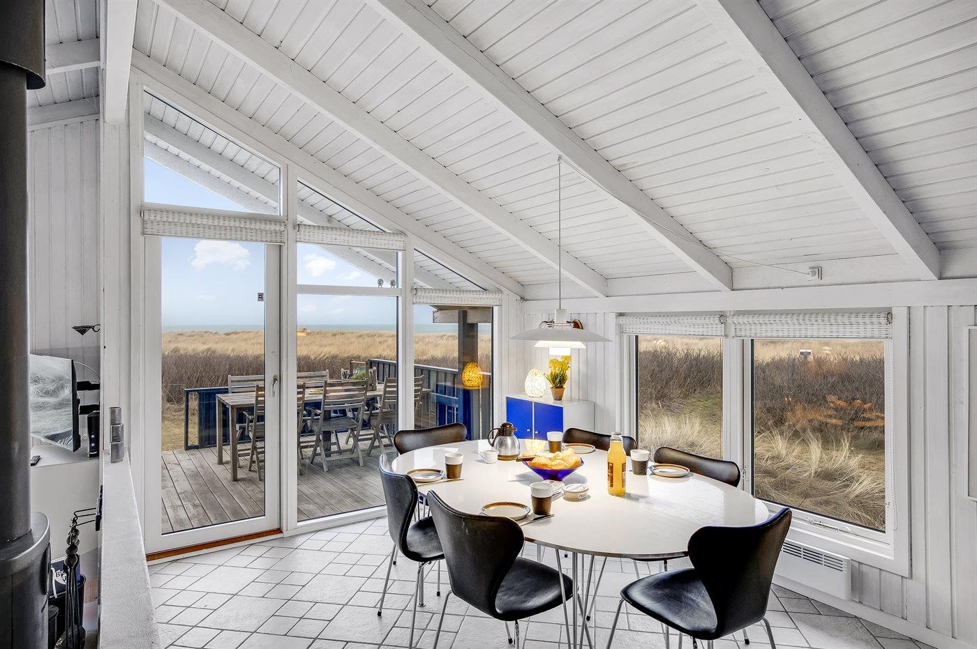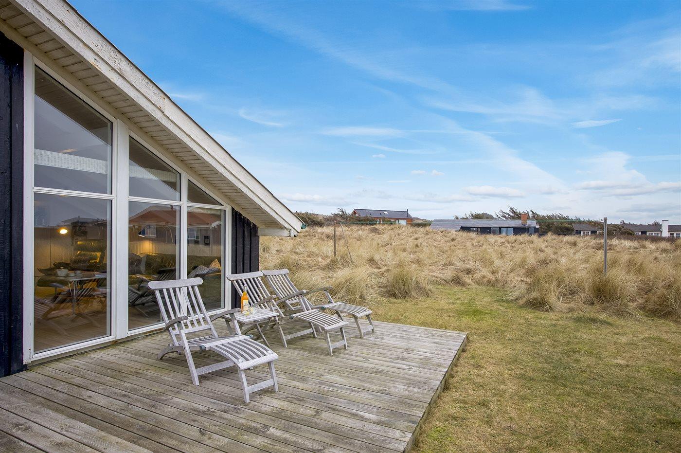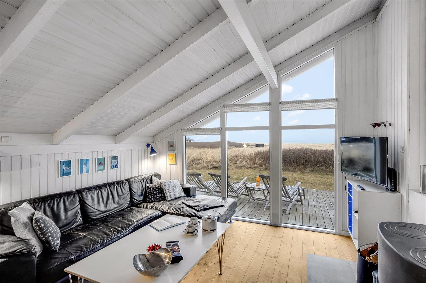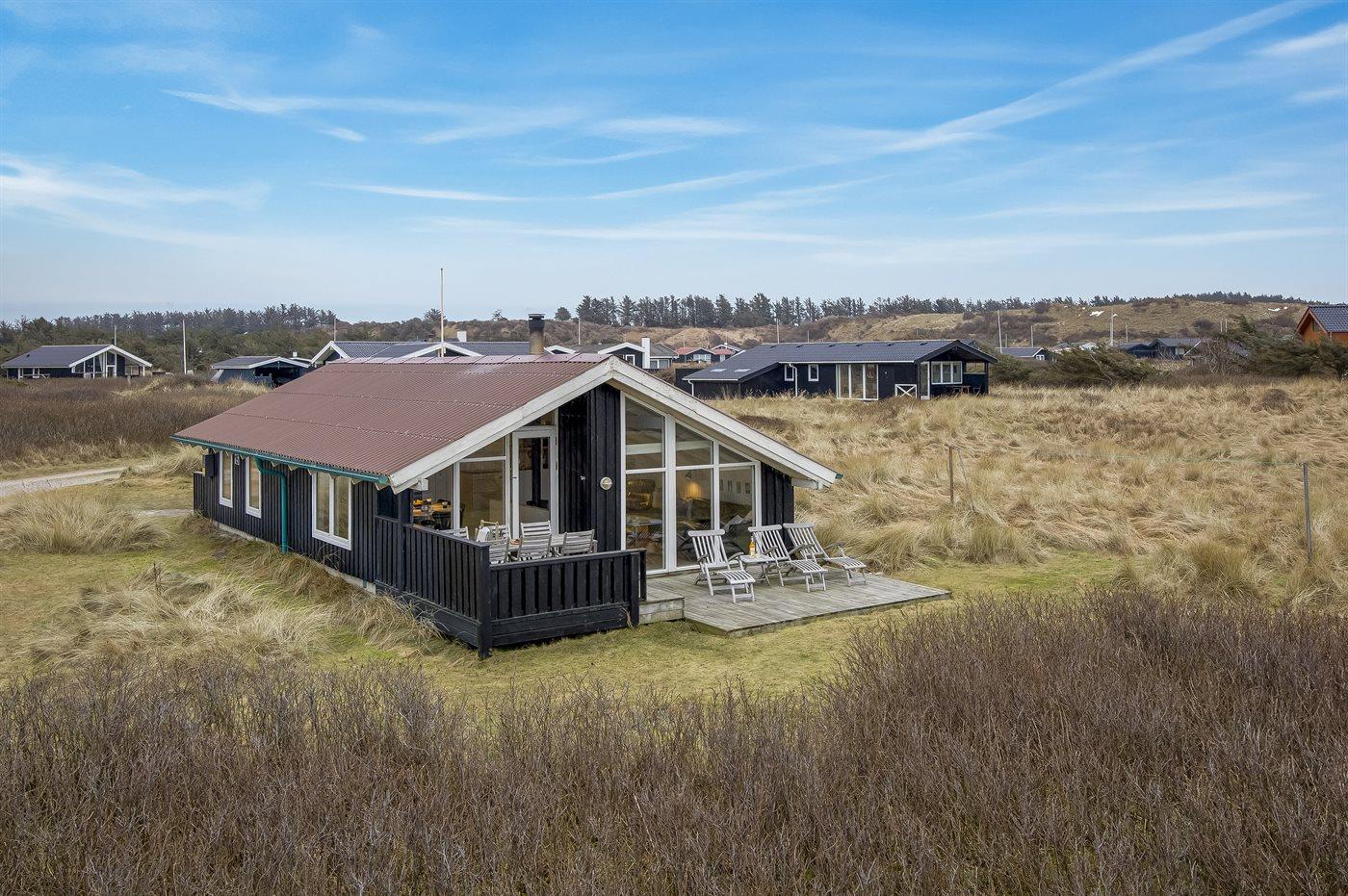 Fantastisk beliggende sommerhus med unik havudsigt over Vesterhavet fra både hus og grund. Dejlige terrasser rundt om huset. Fra feriehuset er der kun en kort cykeltur ind til hyggelige Lønstrup eller Skallerup Seaside, og der er kun et stenkast til den dejlige badestrand. Her er mulighed for gåture med hundene i den flotte natur.