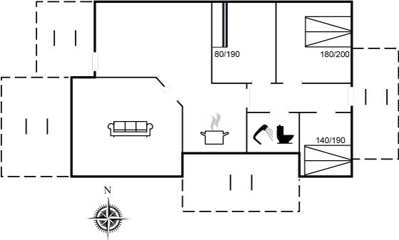 Der er i alt 3 soveværelser. Sovepladserne fordeler sig på: 4 sovepladser i dobbeltsenge. 2 sovepladser i køjeseng.