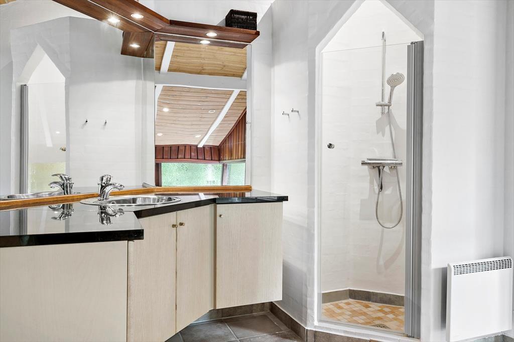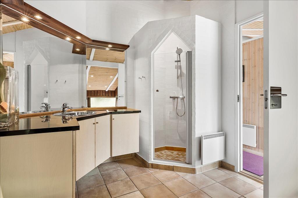Dette liebhaverhus er meget flot og luksuriøst indrettet, og der er tænkt på mange flotte detaljer. Sommerhuset udlejes til 6 personer. Et soverum har en dobbeltseng. Soveværelse 2 har ligeledes en dobbeltseng. Det 3. og sidste soverum har en dobbeltseng med en køje over. En fin hems med to madrasser er også en mulighed for god søvn, hvis der er store børn med på ferien. Meget lækkert badeværelse med bruser, gulvvarme, spabad til 2 personer og sauna. Ekstra badeværelse ligeledes med bruser og gulvvarme. I dette sommerhus kan du forkæle dig selv med lækker wellness. Det flotte opholdsrum ligger i åben forbindelse med det veludstyrede køkken. Her har du lækre kvalitetsmøbler, brændeovn, SMART TV og naturligvis gratis, trådløst Wi-fi internet.