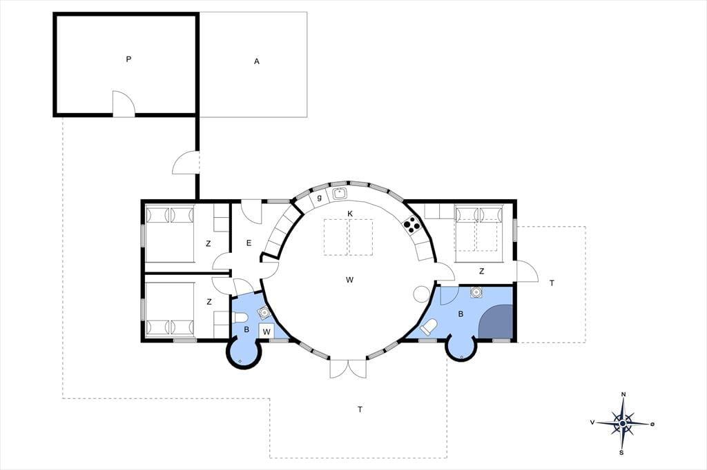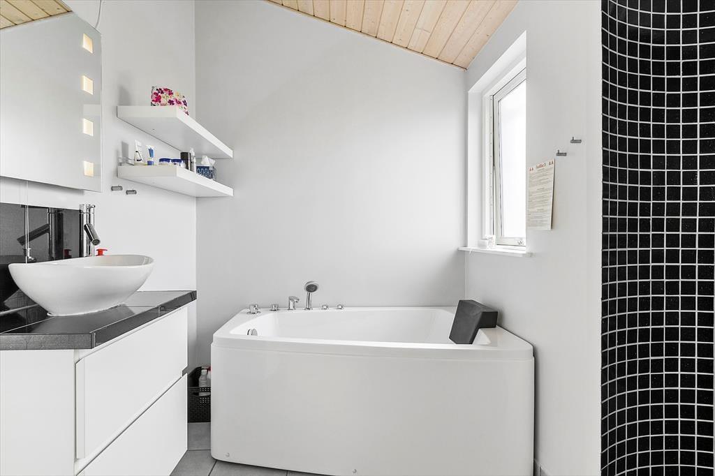 I udkanten af Lønstrup by ligger dette flotte sommerhus med en anderledes og spændende arkitektur. Centrum af huset med et åbent køkken-opholdsrum er cirkelformet og domineret af store vinduespartier, som lukker en masse af det fantastiske nordjyske lys ind i det store rum. Formen gør også, at rummet ikke har nogle hjørner, og på den måde kan hele familien være sammen, selvom man er i gang med forskellige aktiviteter. Hele sommerhuset er flot og moderne indrettet med kvalitetsmøbler, alt i en sort, hvid og grå farveskala og udover et godt udvalg af hårde hvidevarer er her også kabel-tv og trådløst internet, så medbring gerne pc eller tablets hjemmefra. Sommerhuset råder over tre gode værelser med dobbeltsenge og to flotte badeværelser med fuldmurede brusenicher med sorte klinker og et spabadekar i det ene. Værelserne og badeværelserne er fordelt i hver sin ende af huset, så det er muligt at lave en voksen og en børneafdeling. I dette sommerhus er man sikker på at få en afslappende og komfortabel ferie i smukke og velfungerende rammer.