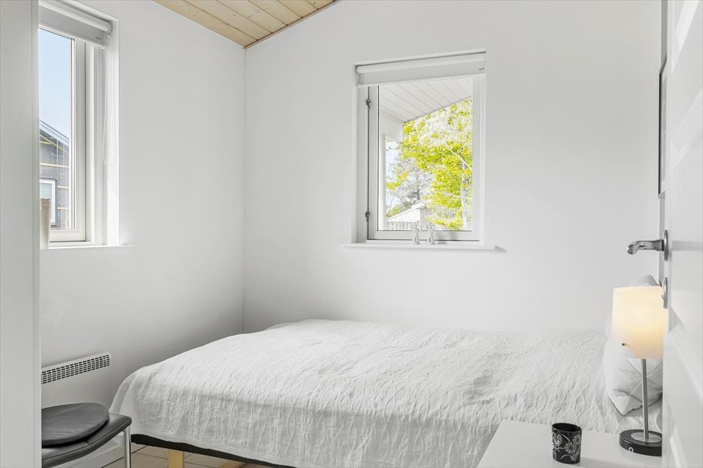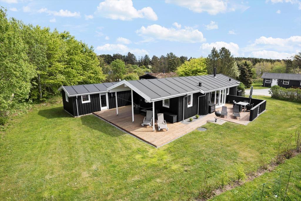 Sommerhuset ligger på en skøn naturgrund, som er lukket af træer og buske, her kan børnene lege i fred og ro, og man kan nyde sommerlivet helt ugeneret. Rundt om huset er flere dejlige terrasser: mod øst kan man nyde morgenkaffen, på sydsiden er der plads til at slikke sol og slappe af på ligggstolene, og mod vest er der godt med læ mellem hovedhuset og det tilhørende anneks og under den overdækkede del.