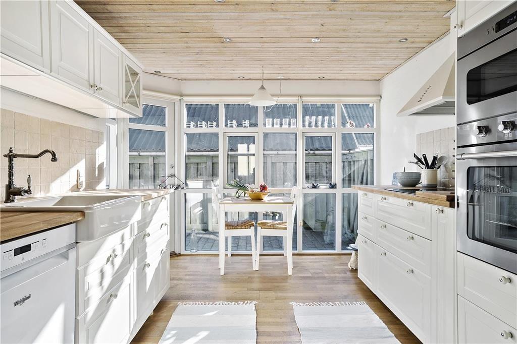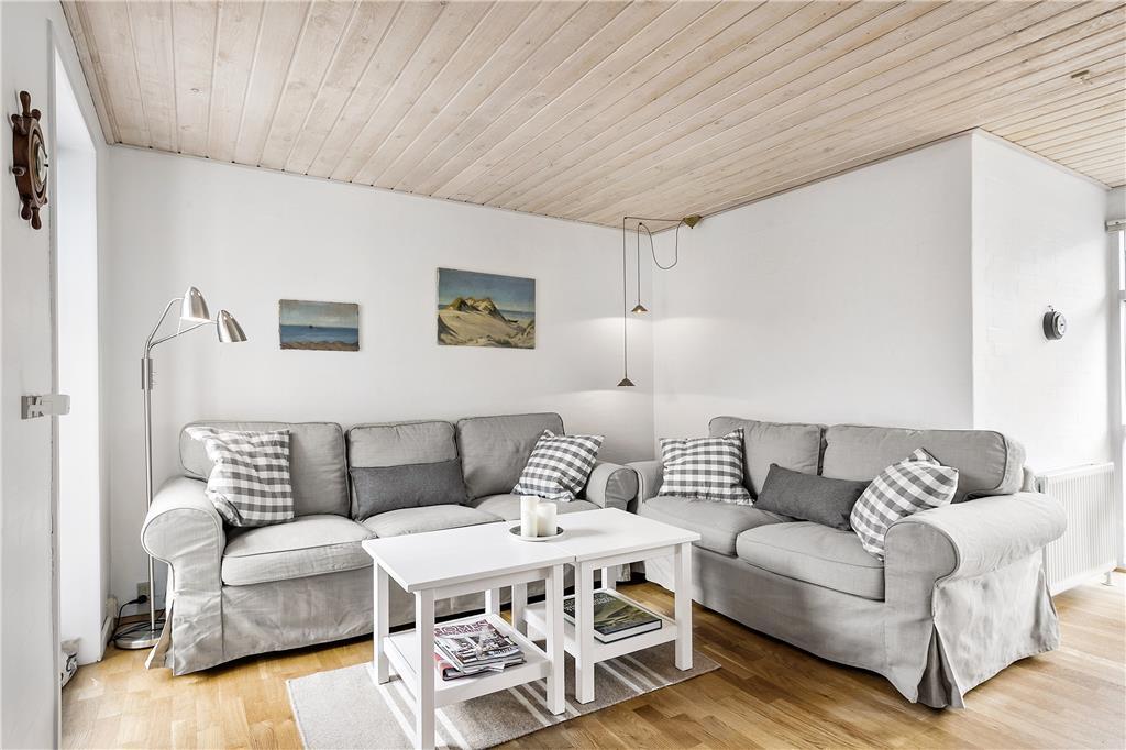 Sommerhuset - et tidligere helårshus, som nu anvendes som fritidsbolig - er indrettet i 3 etager. I kælderen har du et større rum, hvor der er god plads og en dobbeltseng. Hertil et bruserum samt et praktisk viktualierum/bryggers, hvor du også finder husets vaskemaskine og tørretumbler. I stueetagen er der - ud over husets indgang og adgang til den helt lukkede og private gårdhave - et dejligt opholdsrum med brændeovn og et veludstyret køkken, med alt du skal bruge til feriemadlavningen, og et dejligt, og moderne indrettet, badeværelse.. På 1. sal findes de sidste 2 soverum, som ligeledes har hver en dobbeltseng. Alt er særdeles velholdt. Der er kabel-TV og Wi-fi i huset til fri afbenyttelse.