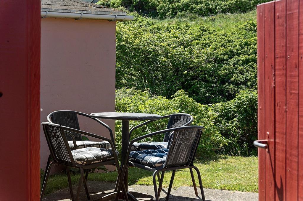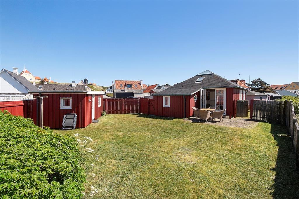 Sommerhuset ligger på en indhegnet havegrund. Her er plads til leg og boldspil og man kan her opholde sig helt uforstyrret. Grunden er omkranset af hybenbuske,der giver god læ for vestenvinden. De mange gode terrasser omkring huset giver mulighed for at finde læ og nyde solen hele dagen.