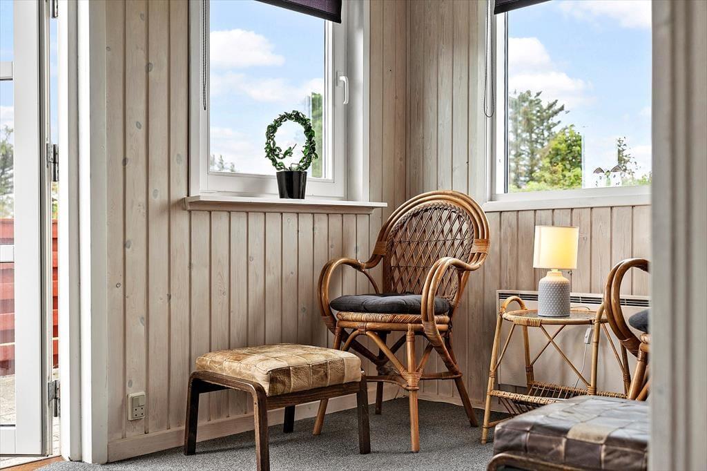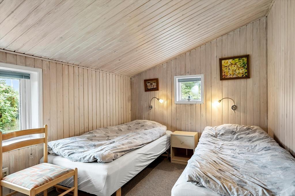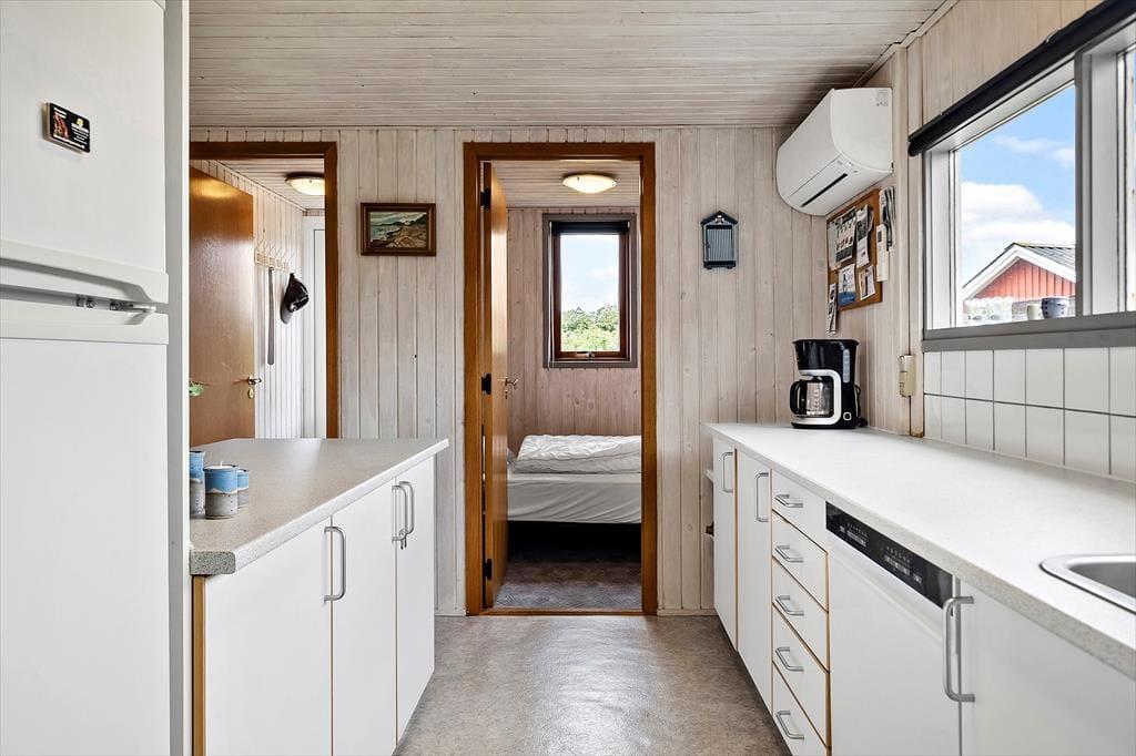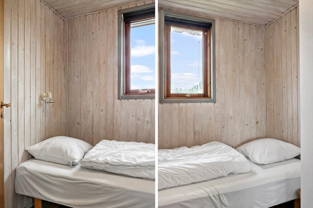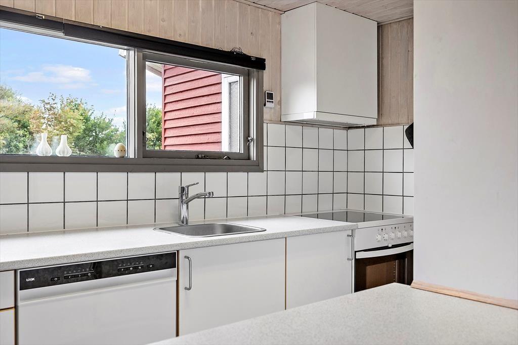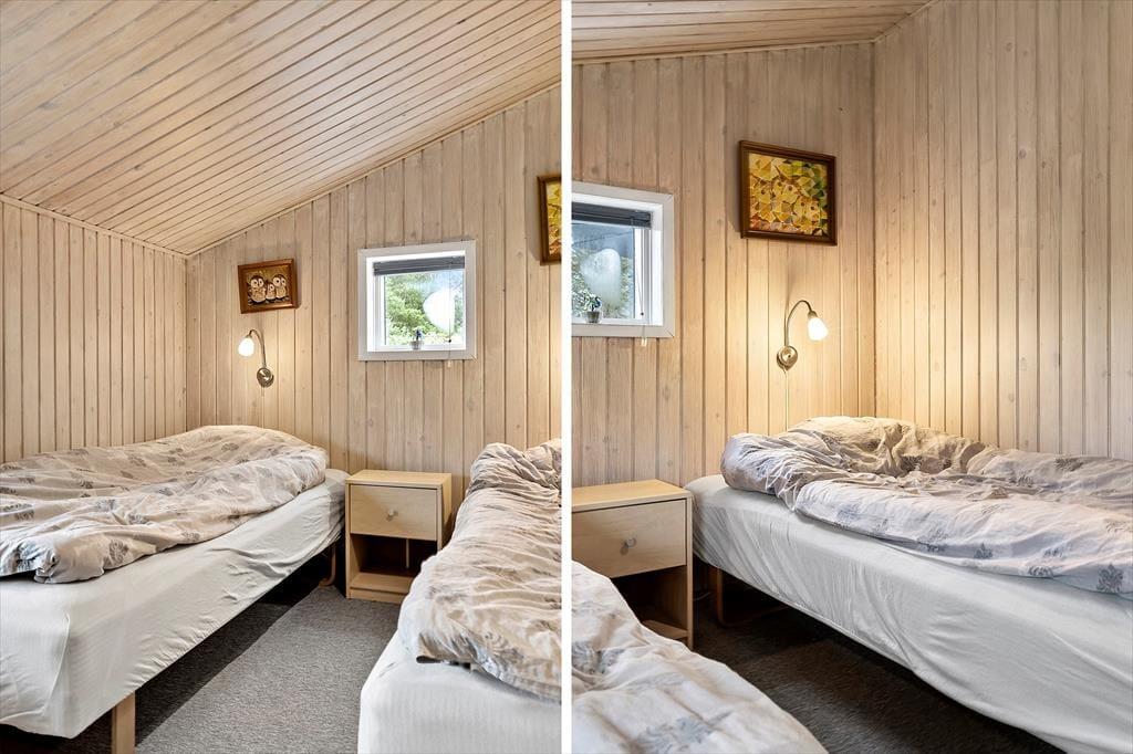Det klassiske træsommerhus er oprindeligt opført i 1964 og er sidenhen blevet grundigt moderniseret. Blandt andet er husets køkkenafdeling indrettet på fin og funktionel vis, så det er et skønt sted at kokkerere, og takket være den åbne forbindelse til stuen kan I sågar tage del i feriehyggen, mens I forbereder aftensmaden. Stuen er hyggeligt indrettet, så det er et dejligt sted at samles til kortspil, TV-kigning og andre afslappende ferieaktiviteter, og vinduerne sørger for et godt lysindfald i løbet af dagen. Foruden opholdsafdelingen byder planløsningen på tre gode soveværelser og et lækkert badeværelse. Det ene soveværelse er udstyret med to enkeltsenge og de to andre med hver især en enkeltseng, så i alt er der sengepladser til fire personer i sommerhuset.