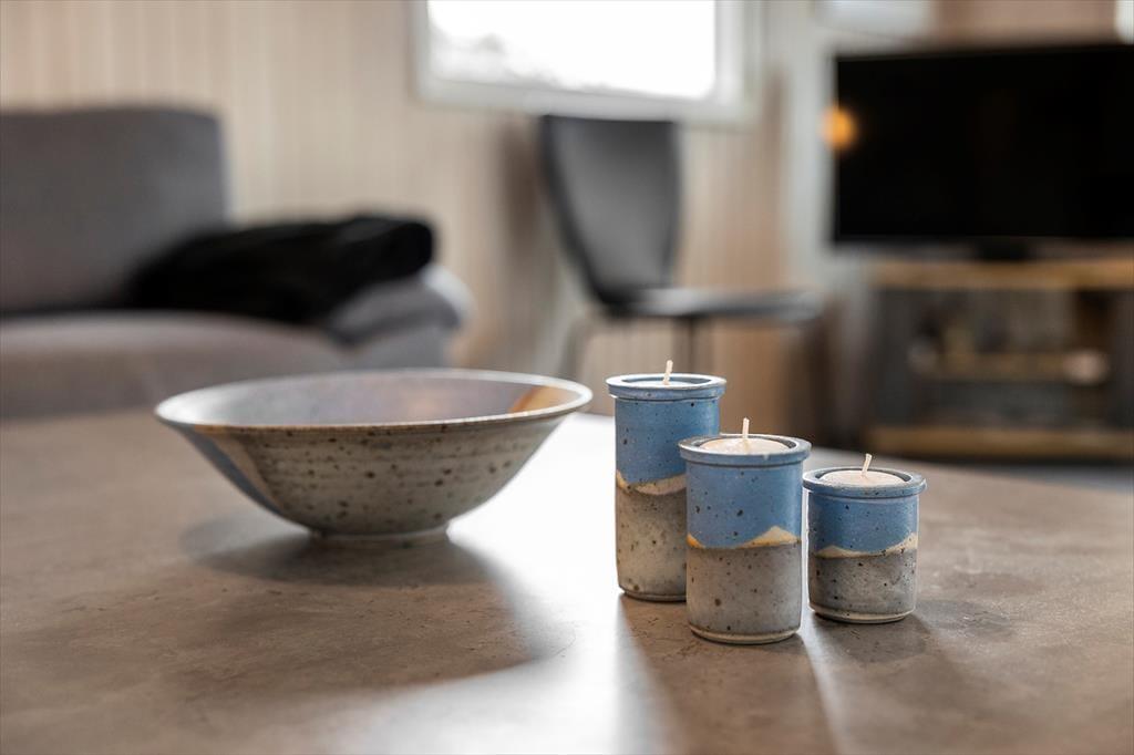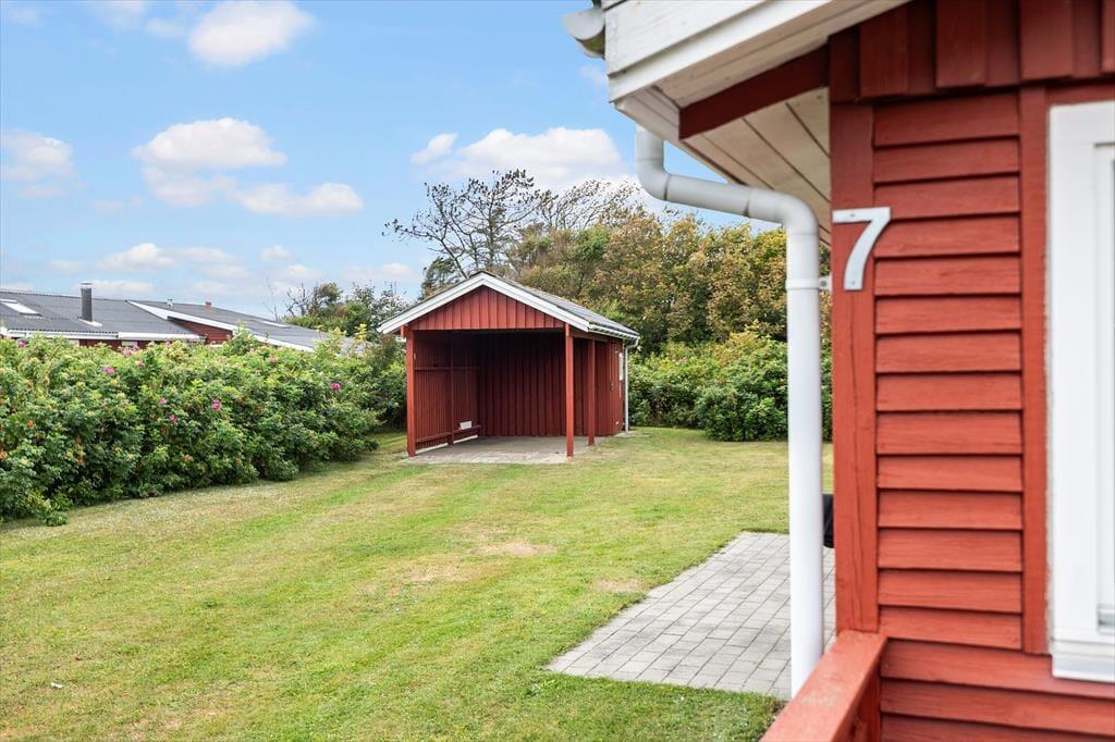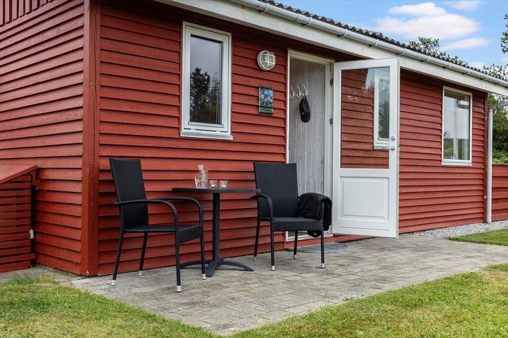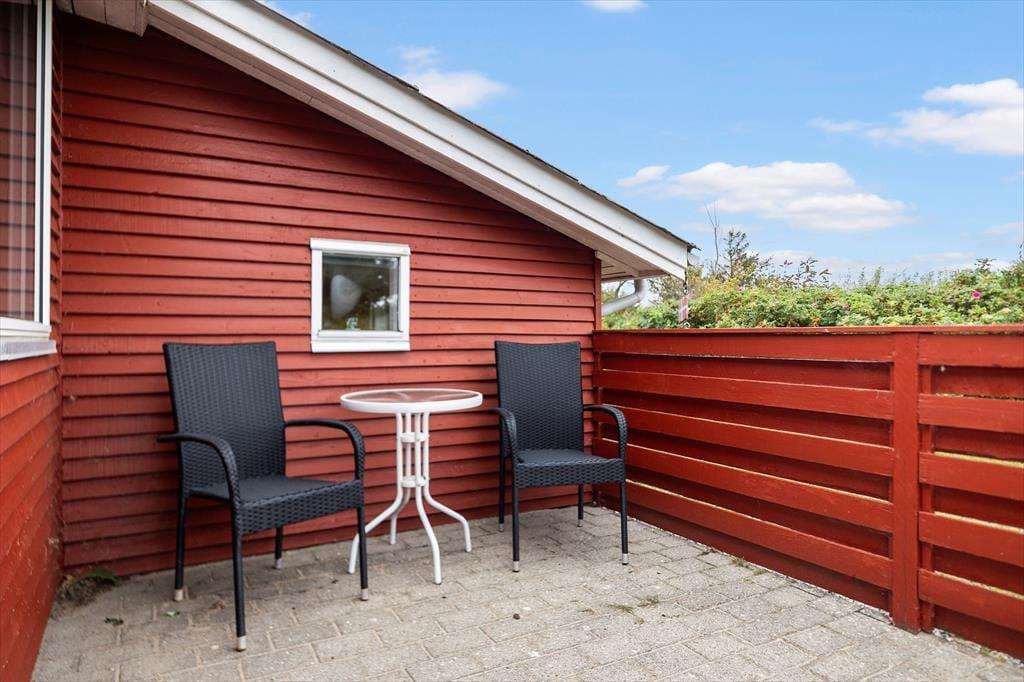 Fra sommerhuset har I direkte adgang til to terrasser: Den mindste ligger mod vest lige ved entréen, mens den anden ligger i naturlig forlængelse af stuen i sydøstlig retning. Der er med andre ord flere opholdspladser at vælge imellem alt efter solens placering på himlen og behovet for skygge. Rundt om huset og terrasserne breder en stor, grøn græsplæne sig, så der er masser af plads til leg og boldspil.