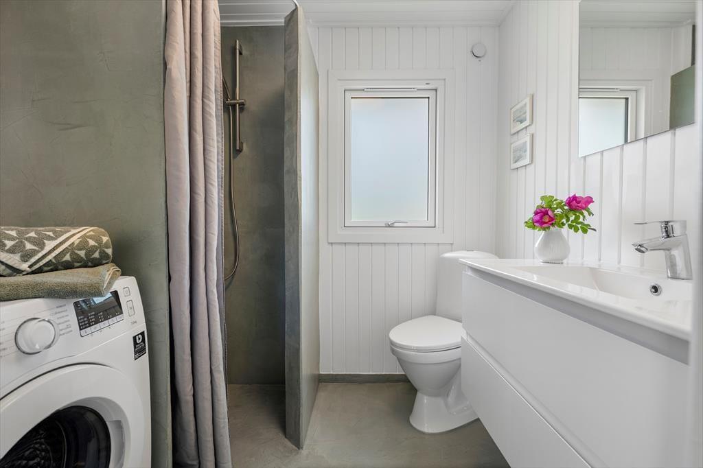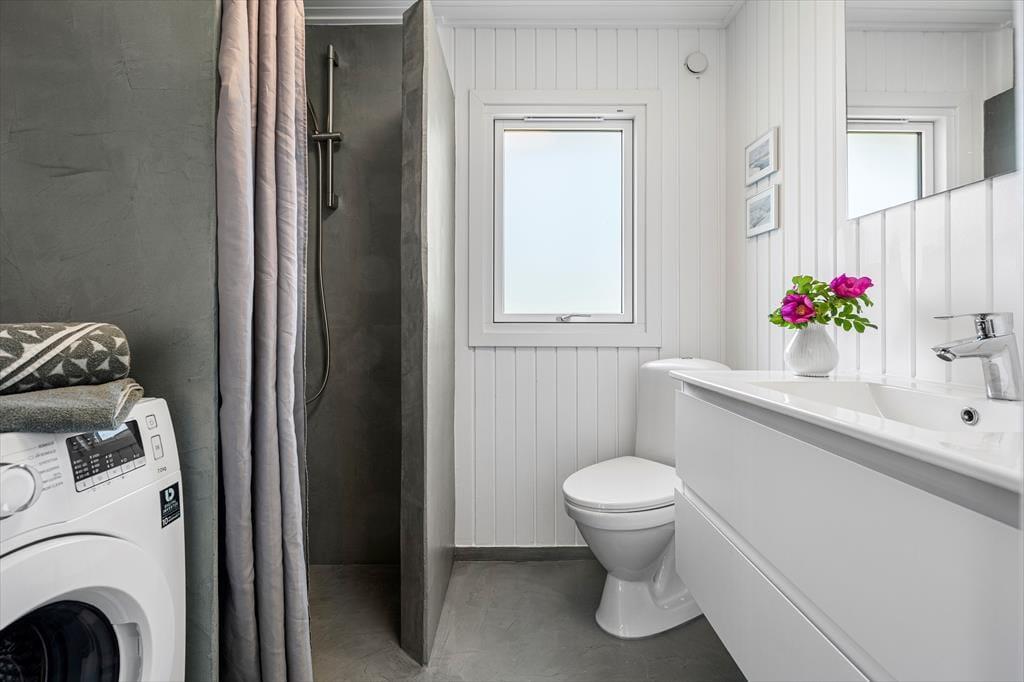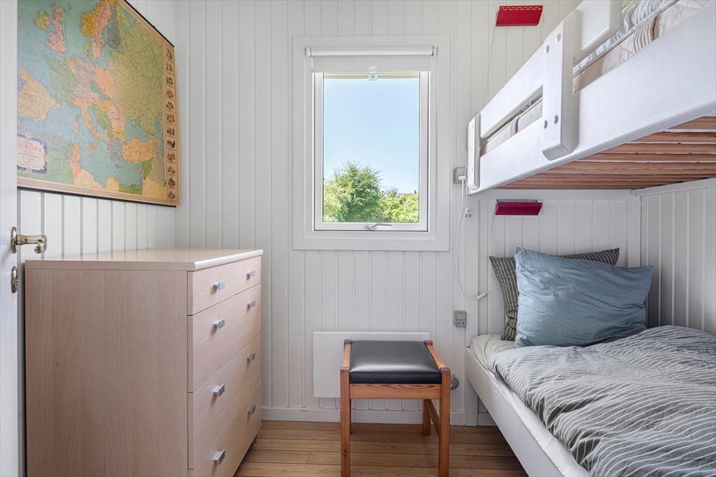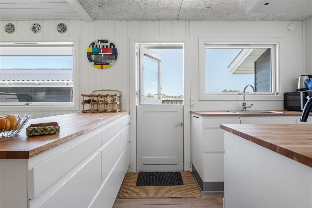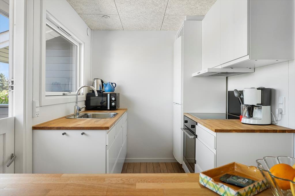 Set udefra ligner sommerhuset en ganske klassisk model med sort træfacade og hvide vinduesrammer. Klassisk kan man bestemt også kalde indretningen inden døre, hvor der er hvidmalede trælister på væggene og brændeovn i stuen. Mange gode opdateringer er dog kommet til på det seneste, så blandt andet har I et lækkert køkken at kokkerere i, og moderne møbler pryder stuen. En herlig detalje ved huset er den flotte udsigt, for mens I står ved køkkenvasken og forbereder aftensmaden, kan I skue ud over et grønt og frodigt landskab. Huset rummer for øvrigt et pænt badeværelse og to soveværelser, og hvis I har brug for ekstra sengepladser, står der en dobbeltseng i annekset.