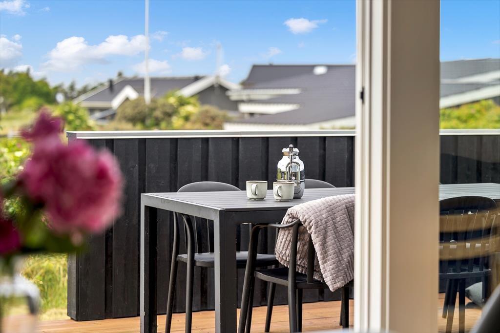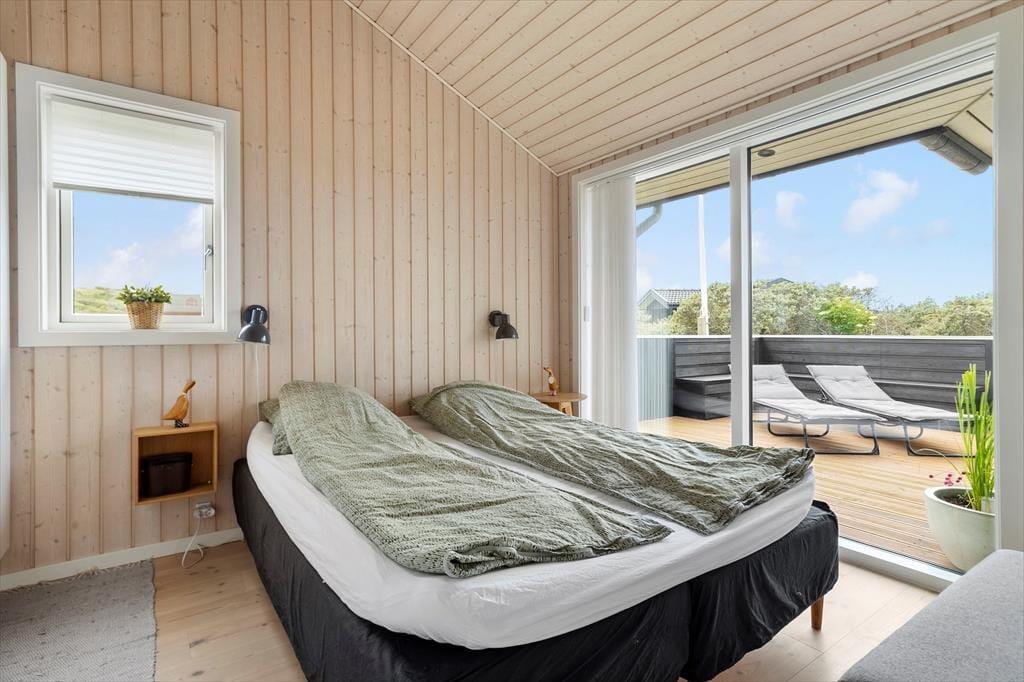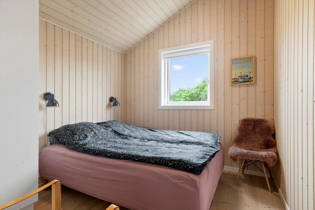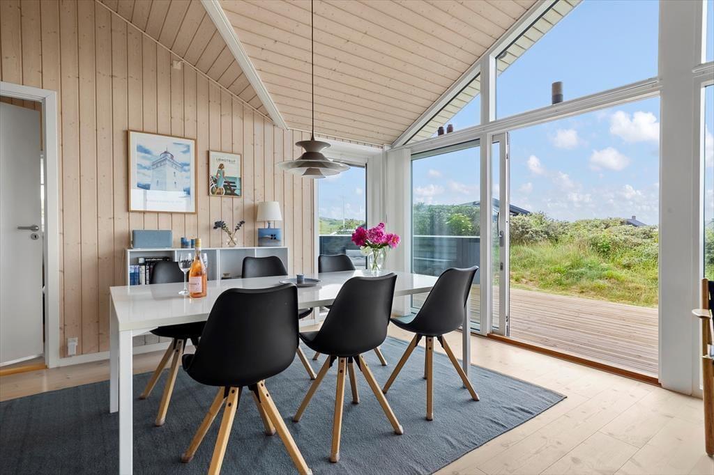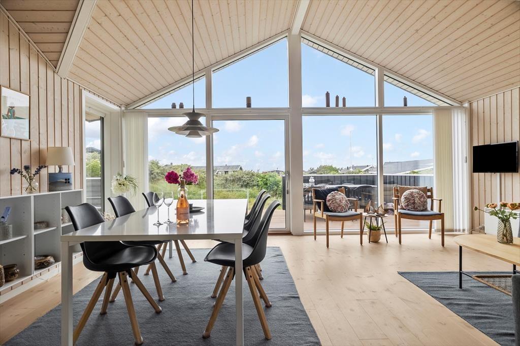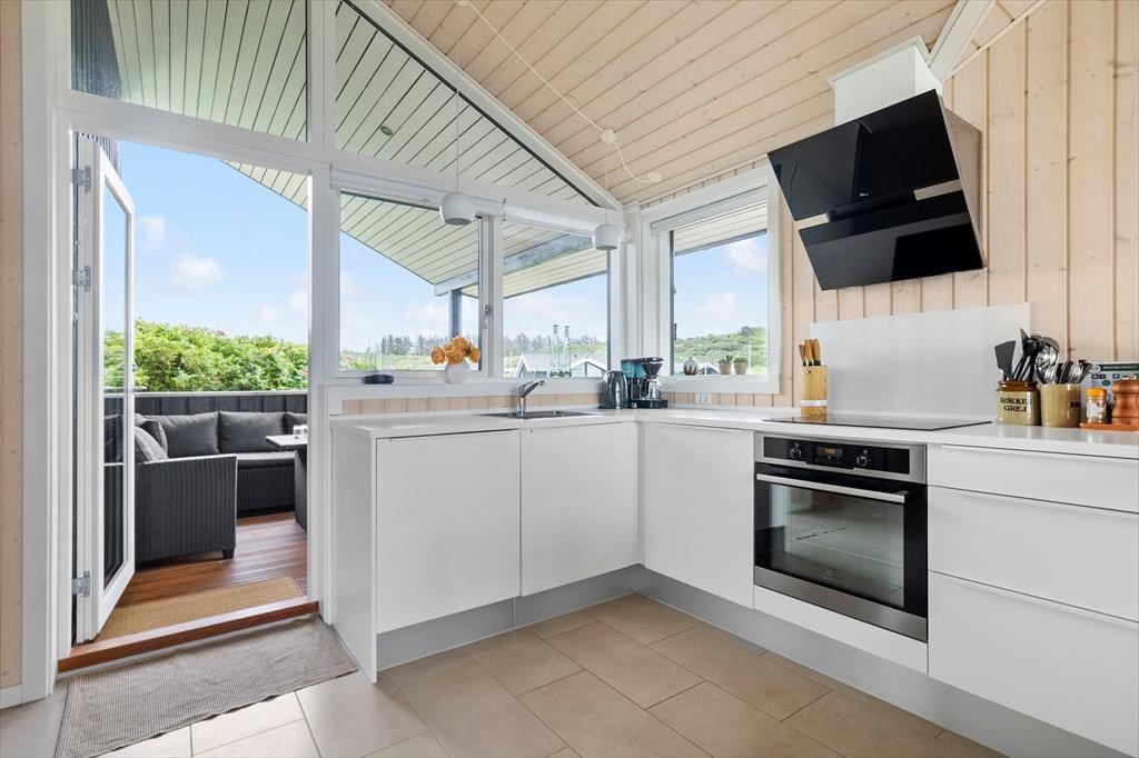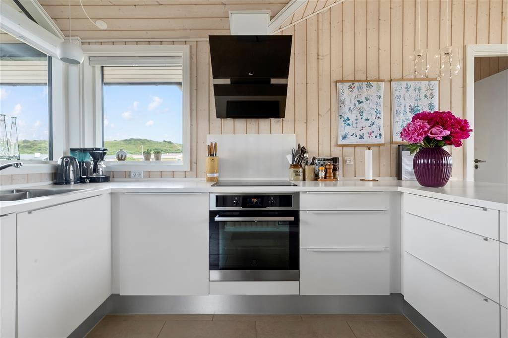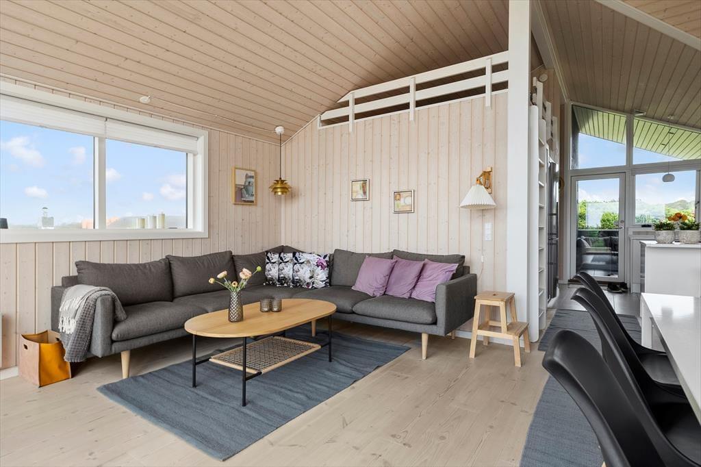 Sommerhuset er moderne indrettet med nye og smarte møbler. Der er tre soveværelser med gode senge og god skabsplads. Sommerhusets køkken ligger i åben forbindelse til stuen. Fra stuen er der udgang til terrassen. De store vinduer i stuen giver et dejligt lysindfald og der er mulighed for at nyde den gode udsigt til området og et fint kig til havet.