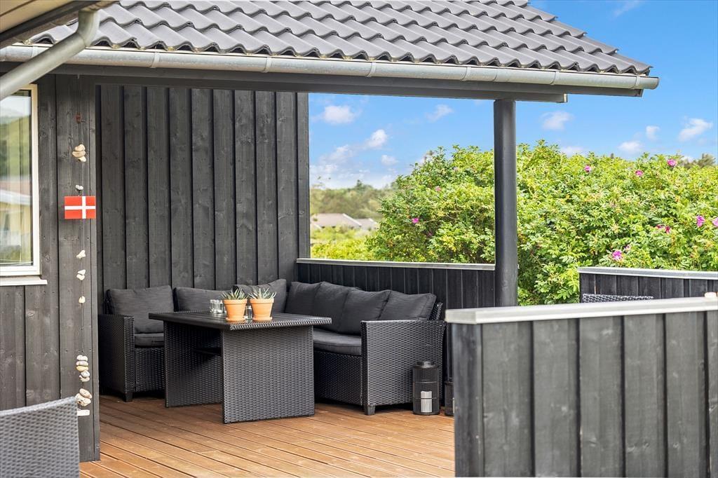 Sommerhuset ligger på en kuperet naturgrund. Flere steder fra grunden er der et fint havkig. Der hører flere gode terrasser til sommerhuset, så både morgen af aftensolen kan nydes.