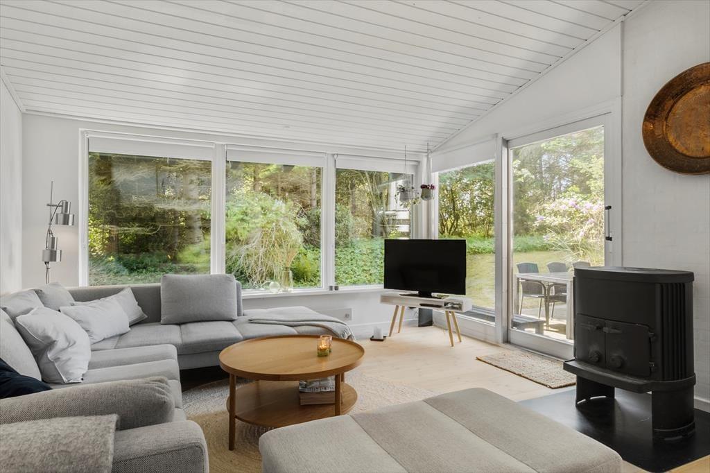 Haven, som omkranser huset, er ugeneret takket være den tætte randbeplantning. Nåletræer, rododendron og andre grønne vækster sørger for, at I har noget kønt at kigge på, når I nyder det tilbagelænede ferieliv på terrassen. I den store have er der flere terrasser at vælge imellem, så I kan slå jer ned lige der, hvor solforholdene er perfekte.