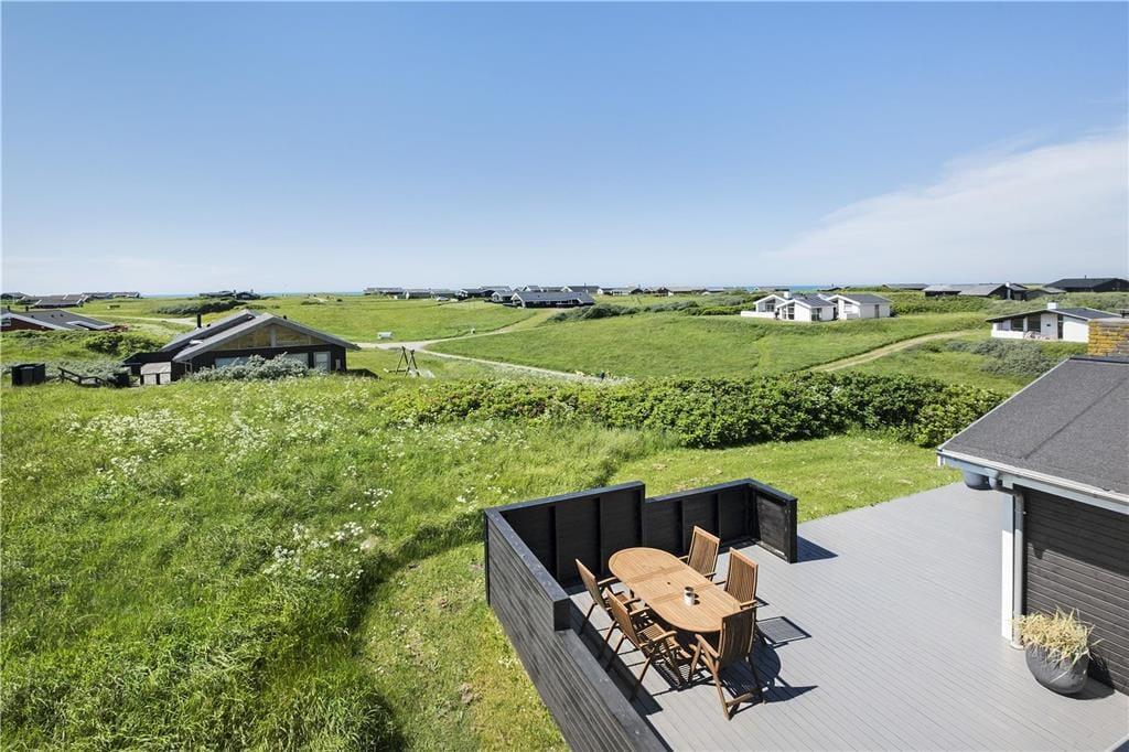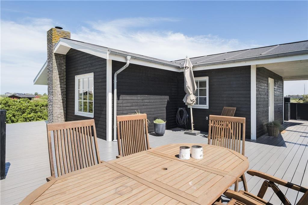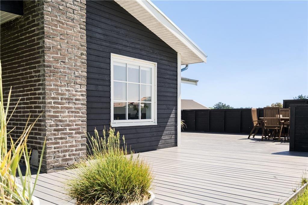 Ferielivet kan også oplagt udspille sig på terrassen, som er stor, solrig og delvist afskærmet af plankeværk. Der er også en overdækket afdeling, hvis I foretrækker at sidde i ly eller måske ligefrem i skygge på de varmeste sommerdage. Den kæmpestore naturgrund, som huset er placeret midt på, ligger højt i landskabet, og derfor har I en skøn udsigt over land og by fra terrassen.