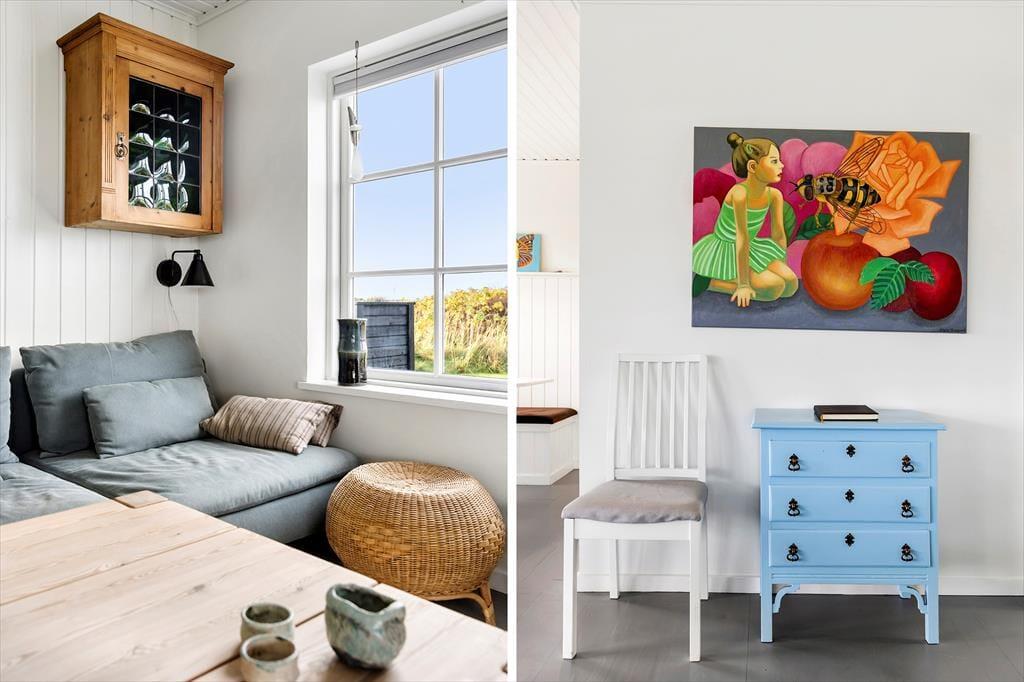 Sommerhuset ligger for enden af en lukket vej og dermed ganske roligt. Samtidig er Lønstrup by lige i nærheden, så I kan hurtigt spadsere ind til spisesteder og indkøbsmuligheder, når I får lyst til en isvaffel eller mangler mælk til kaffen. Maleriske Lønstrup er kendt for sine mange gallerier og kunstnerværksteder, og især i sommerperioden er der mange arrangementer og events rundt omkring i byen. Og så er der selvfølgelig Vesterhavet og stranden, som venter få hundrede meter fra sommerhuset. I kan allerede nu begynde at glæde jer til ferien!