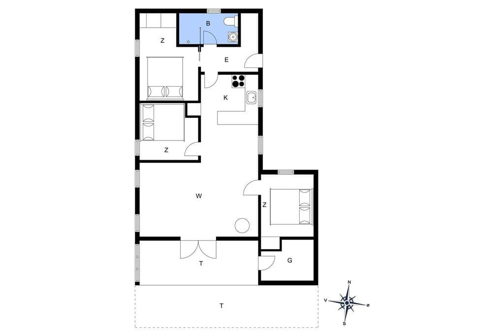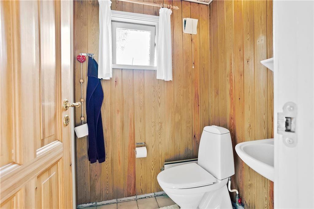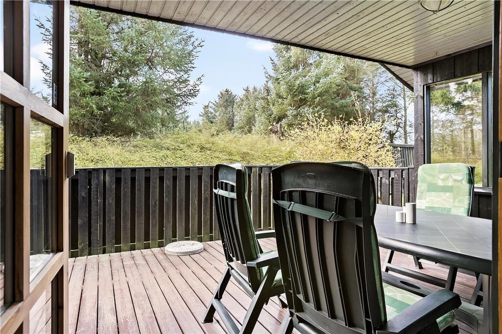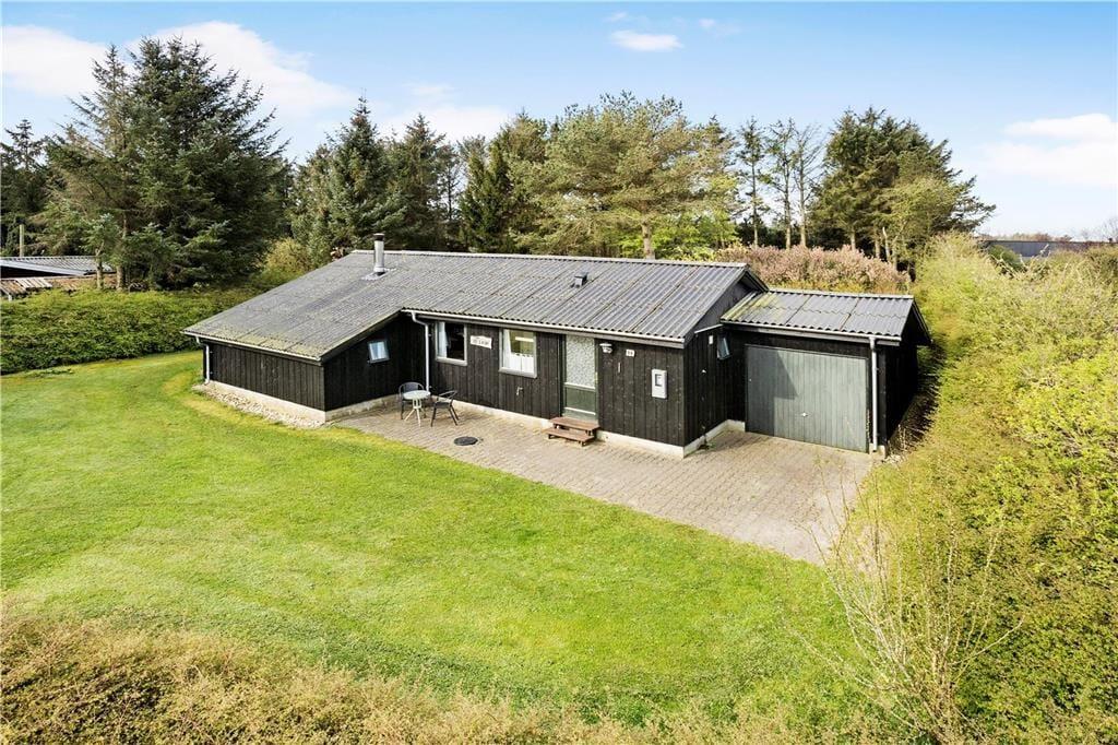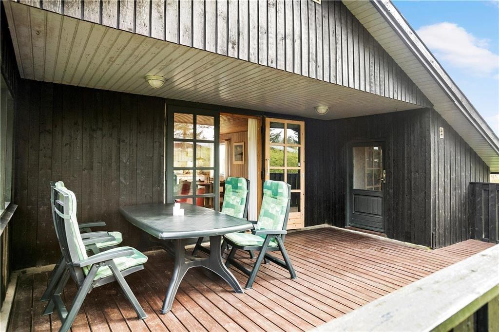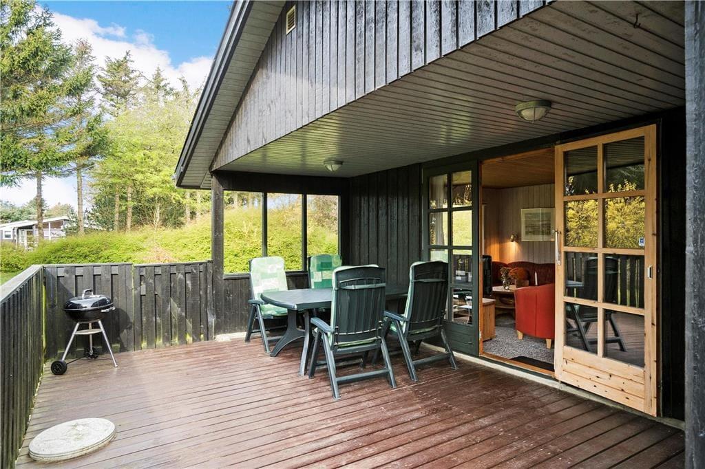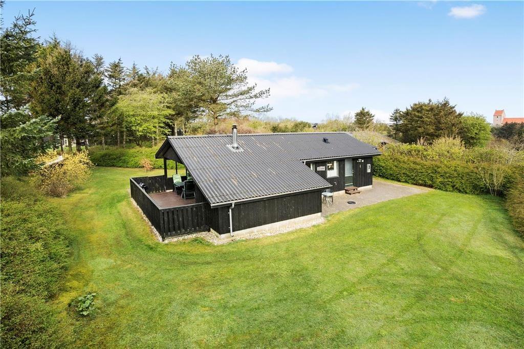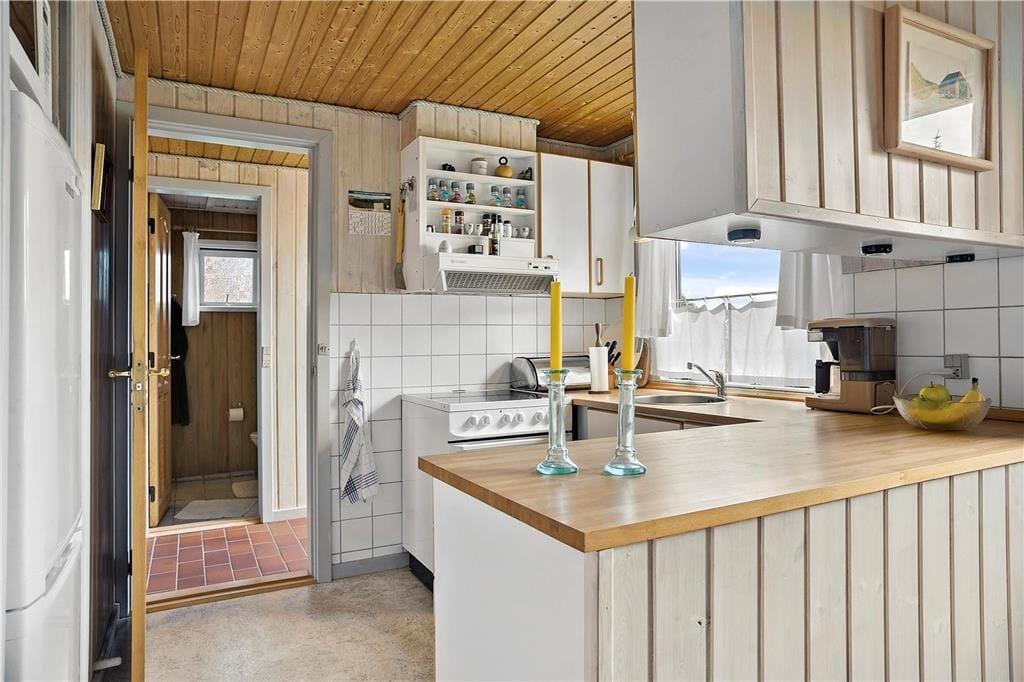 Med sort træfacade og flere terrasser præsenterer sommerhuset sig på klassisk vis midt på den grønne grund. Den klassiske sommerhusfornemmelse gør sig også gældende indenfor, for her er der træbeklædning på vægge og lofter, og en brændeovn bidrager med hyggestemning og varme temperaturer i stuen. Her kan I samles for at spille brætspil, se TV eller bare slappe af i sofaafdelingen – og hvis I er ved at blive sultne, kan I gå i gang med at forberede aftensmaden i den åbne køkkenafdeling. Et badeværelse hører selvfølgelig også med til planløsningen, og endelig er der tre soveværelser, der alle er indrettet med dobbeltseng.