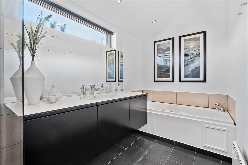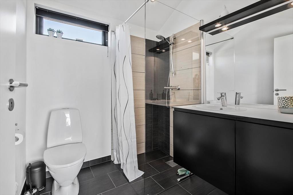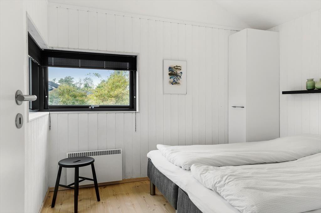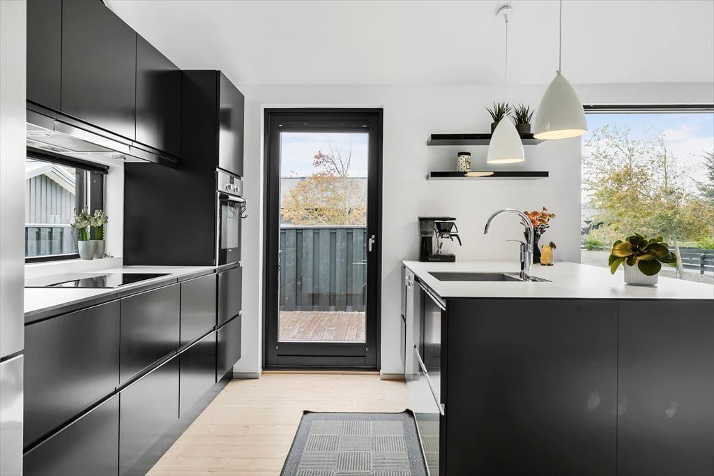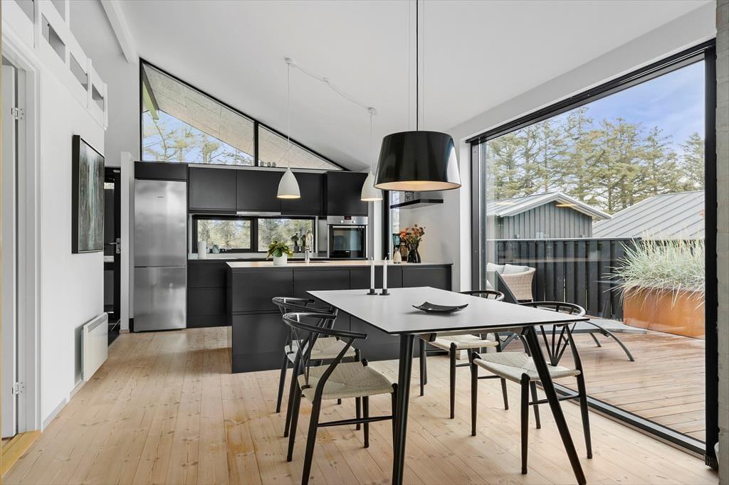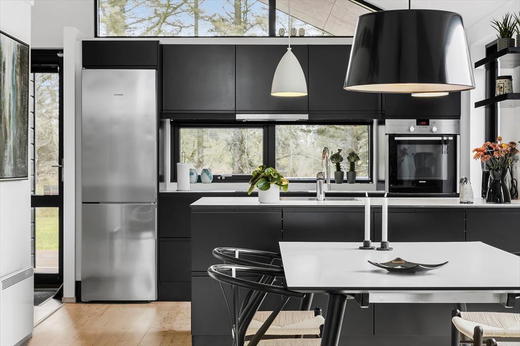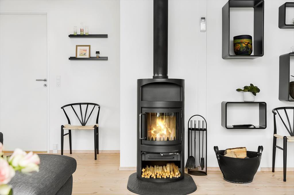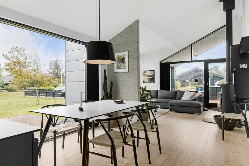 Inden døre er atmosfæren lys og indbydende, for de mange og store vinduer sørger for et flot lysindfald i løbet af dagen. Det gælder ikke mindst for stuen, som er et smukt opholdsrum med åbent køkken, spisebord og sofaafdeling med brændeovn. Husets øvrige rum, der tæller tre soveværelser og to badeværelser, er også både stilfuldt og komfortabelt indrettet, og på det ene badeværelse er der endda installeret et spabad, så I kan slappe af med et varmt bad om aftenen. Aftenhyggen kan også byde på en god film, for i stuen er der koblet Chromecast til TV’et, så I nemt kan streame lige det, I ønsker.