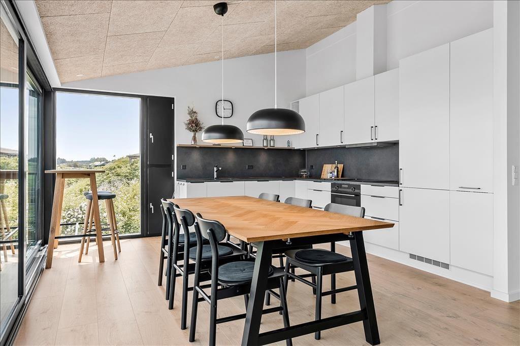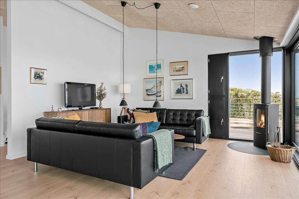 Ved entreen vil man opdage det første at de 3 badeværelser der er i huset. Dette byder også på vaskemaskine og tørretumbler. Opholdsrummets store glasfacader indrammer udsigten elegant. Her kan morgenkaffen kan nydes med hav og natur i alle retninger ved bar-bordet Man kan vælge at åbne de store skydedøre i glasfacaden, ud til den svævende altan over skråningen. Denne giver den perfekte platform til at nyde havet og de spektakulære solnedgange. Opholdsrummet byder også på veludstyret køkken, hvor maden kan tilberedes og efterfølgende serveres ved det store plankebord. Der er gulvvarme overalt, og komforten er i det hele taget i højsædet. I master soveværelset har man eget bad og toilet samt aircondition til de ekstra varme dage. Alle rum byder på ventilation med skodder og insektnet, som man trygt kan have åbnet om natten og sove til havets brusen. Man finder også et separat anneks, med eget bad og toilet. Her sover man i en elevationsseng der selvfølgelig også har udsigt. Perfekt til hyggelige eftermiddage med en god bog.