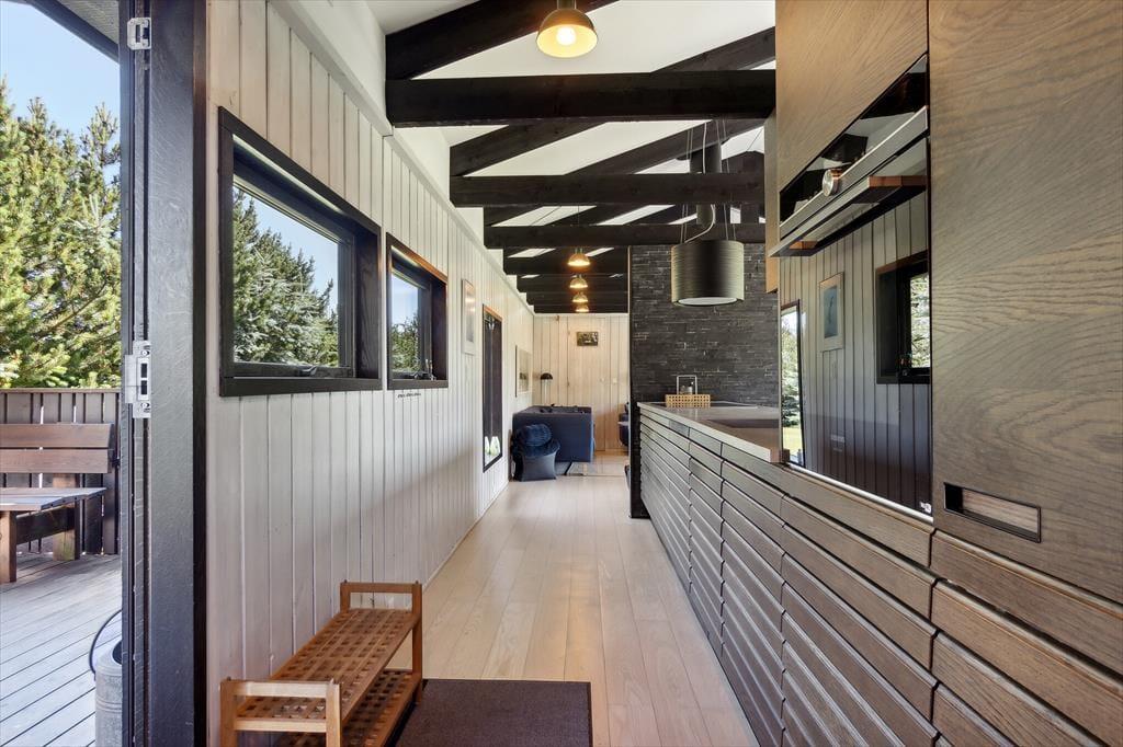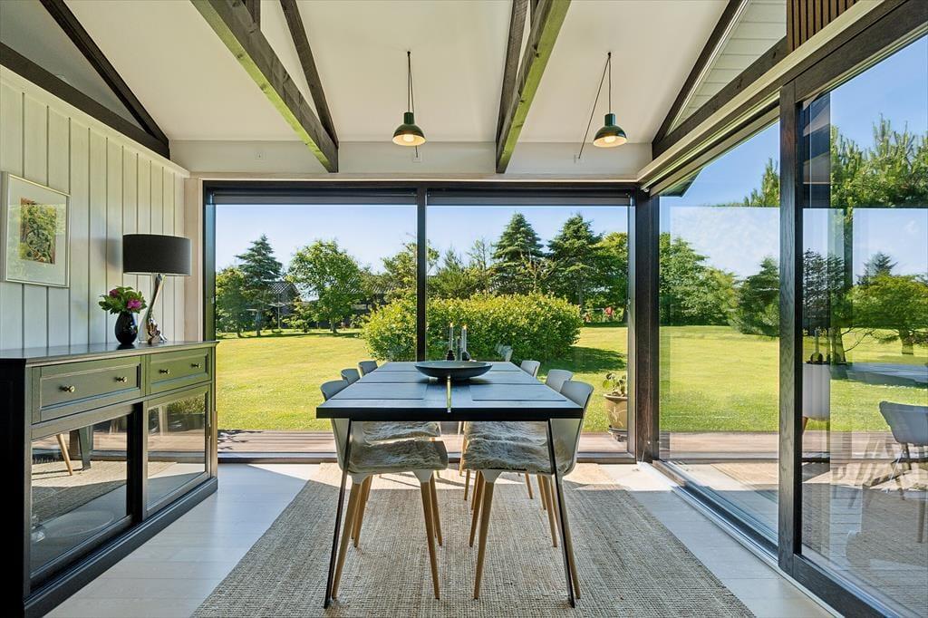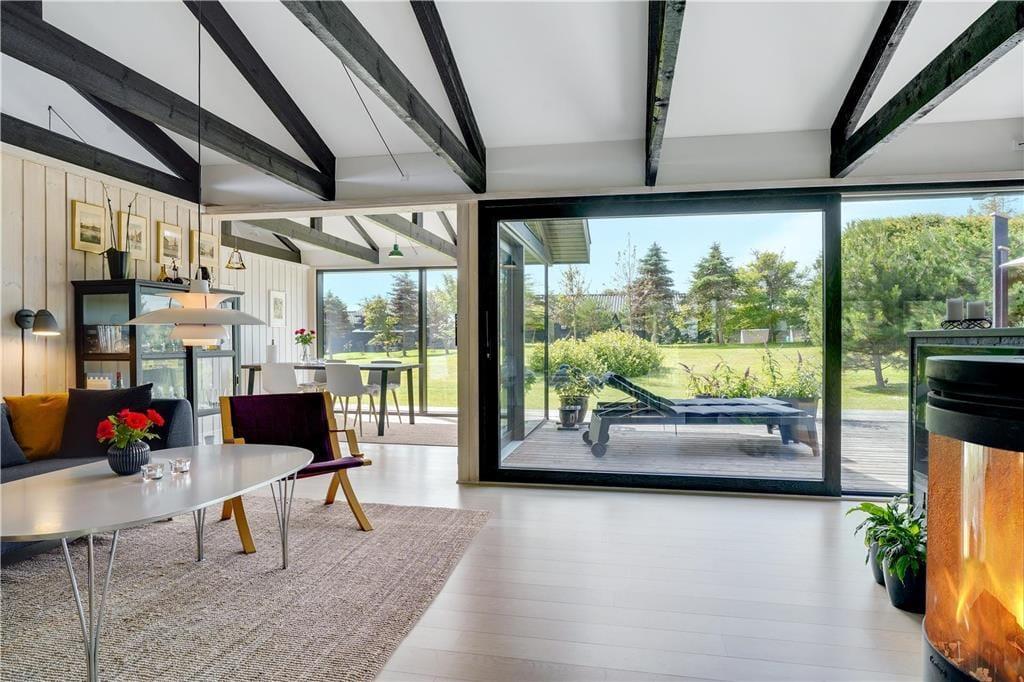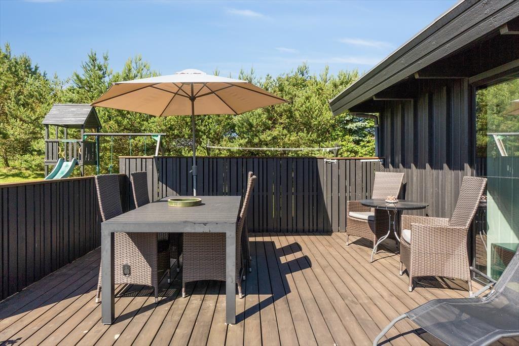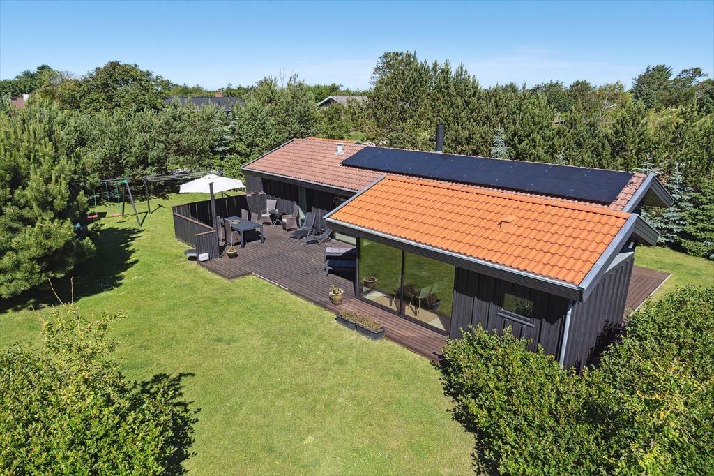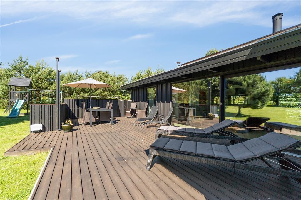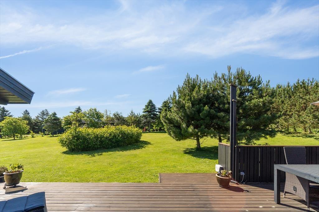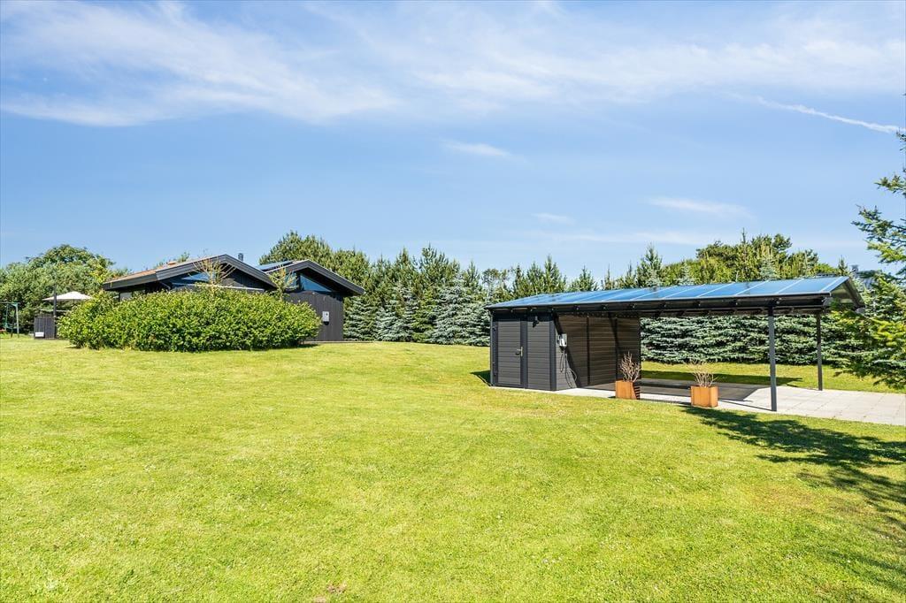 Holder I ferie om sommeren, er det oplagt at tilbringe en stor del af solskinstimerne ude på terrasserne på den 2.309 m2 store grund. Der er tre terrasser at vælge imellem, så I kan lige tage bestik af solforholdene, inden I beslutter jer for, hvor I slår jer ned. For at gøre haveidyllen komplet er der både grill, parasol, legestativ og udendørs bruser til rådighed, og så er der masser af plads til at lege og boltre sig på græsplænen.
