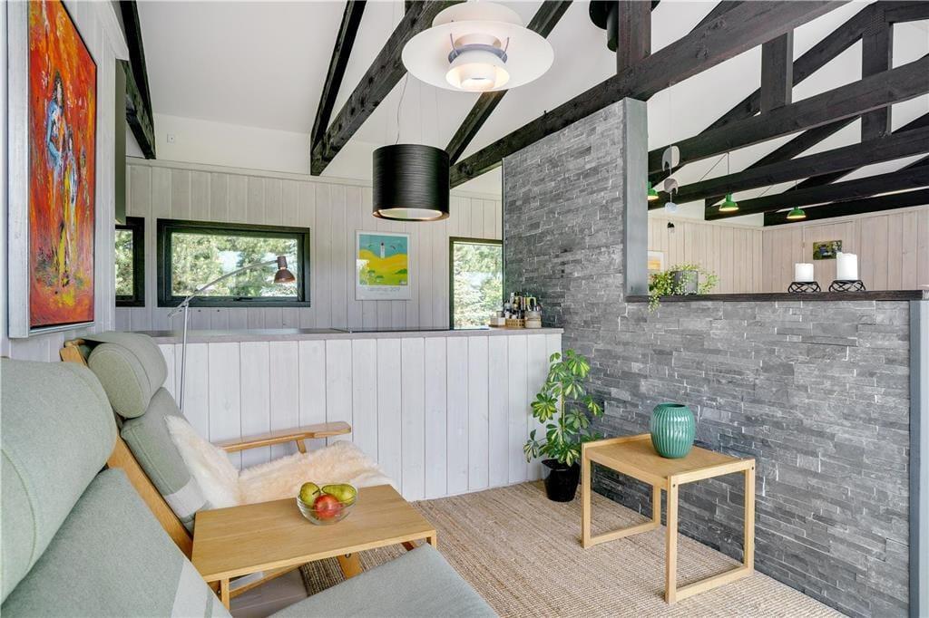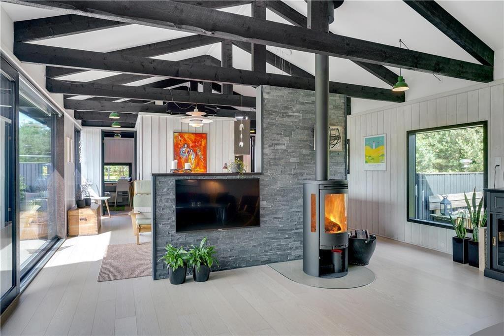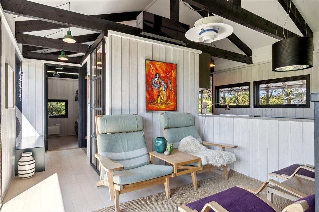 Her på adressen kan I uden problemer folde ferielivet ud med alt, hvad der hører til, for inden døre kan I brede jer på hele 106 m2. Dertil kommer et anneks på 10 m2, der fungerer som et godt supplement til husets tre soveværelser. Hvis I er mange samlet, er det rart, at der er to badeværelser i huset, og det ene er endda udstyret med både vaskemaskine og tørretumbler, så I kan vaske undervejs, hvis I løber tør for sommerkjoler eller hyggesweatre. En stor del af husets kvadratmeter er dog dedikeret til en lys og velindrettet opholdsafdeling, hvor køkken, opholdsstue og spisestue ligger i åben forbindelse. Det er et dejligt sted at tilbringe tiden –eventuelt med ild i brændeovnen og en god film på fladskærmen ved aftenstid.