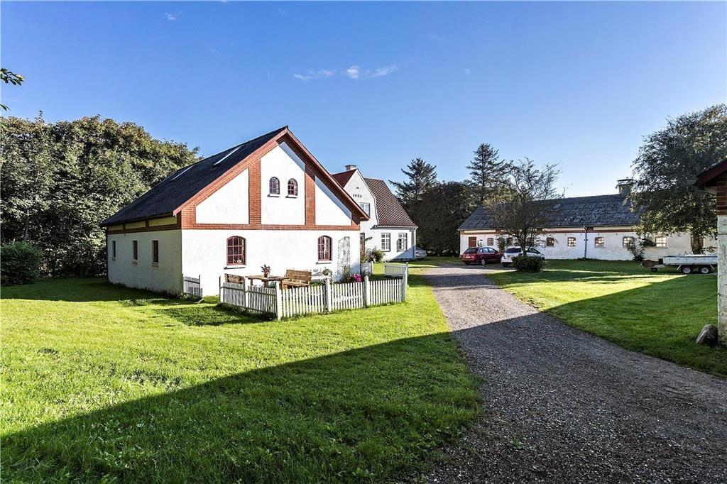 En gang rummede feriehuset gårdens traktorer og øvrige maskiner, og den oprindelige charme var det vigtigt for gårdens familie at bevare, da de besluttede sig for at indrette et feriehus. Derfor allierede de sig med en dygtig arkitekt og en lokal snedker med sans for detaljerne. Det er der kommet et helt særligt feriehus på 130 kvm ud af, skræddersyet til at danne rammen om jeres ferieoplevelser. Feriehuset er i to etager og rummer en stor stue og et lækkert køkken-alrum med brudt etageadskillelse og ovenlysvindue. Køkkenet har opvaskemaskine, mikrobølgeovn, ovn, komfur, køleskab og fryser. Feriehuset er i det hele taget indrettet med charme og opmærksomhed for detaljer. Indretningen er velgennemtænkt og farverne er afstemt. På 1. salen finder man et stort lækket soveværelse med dobbeltseng og et mindre værelse med 2 enkeltsenge. Hertil kommer en hyggelige og charmerende alkove.