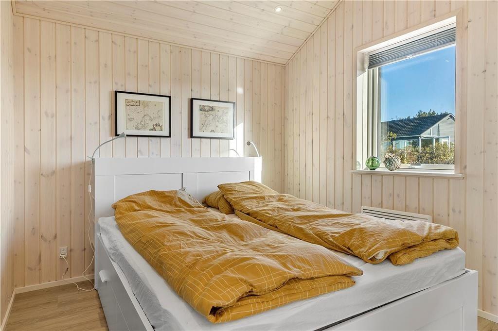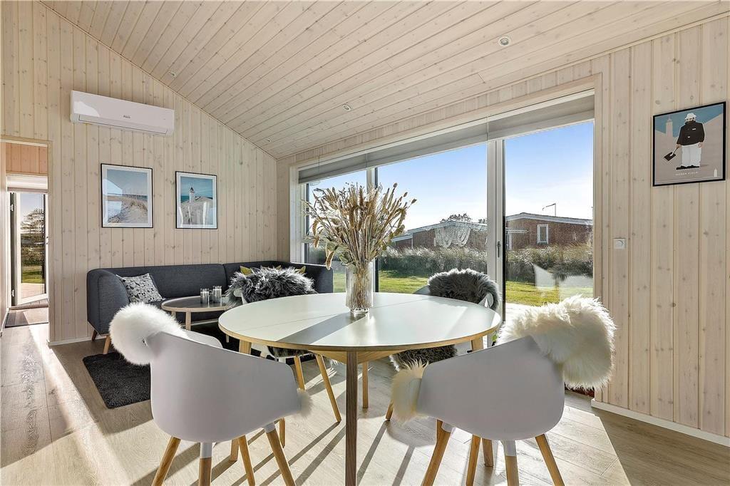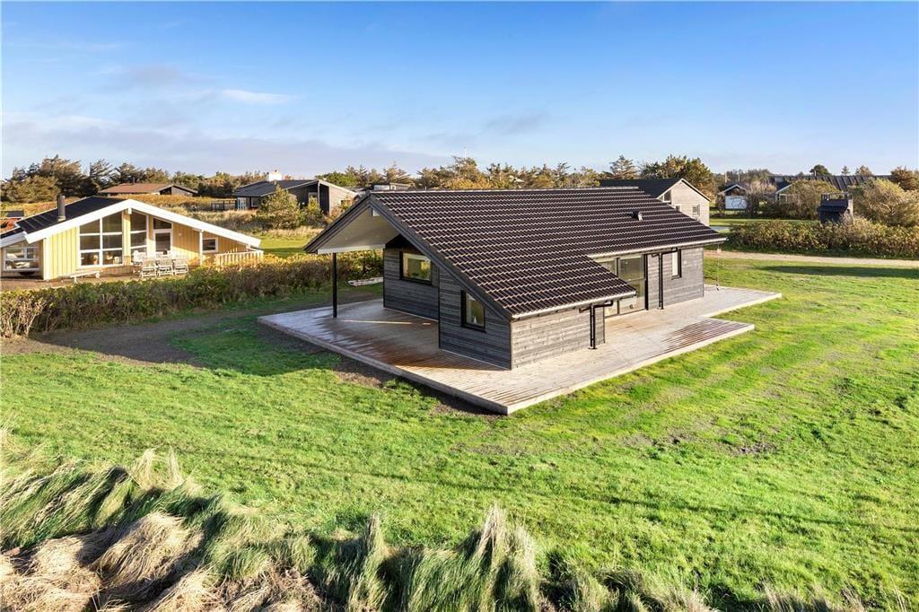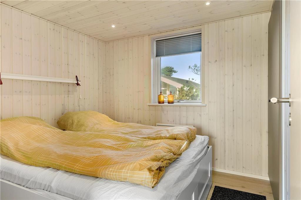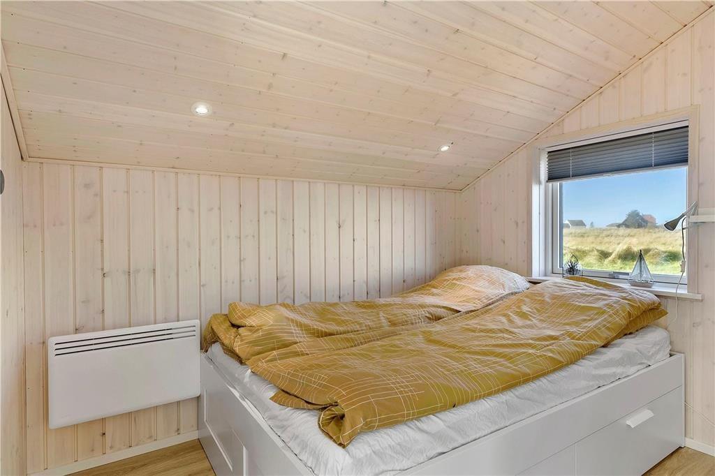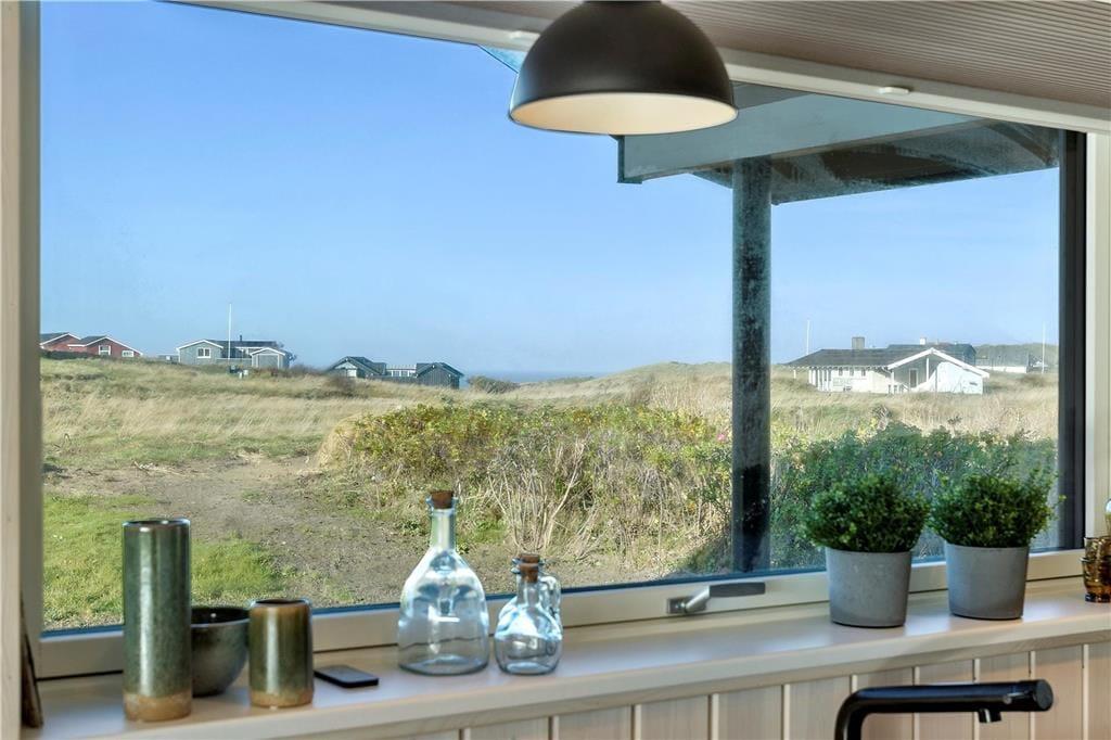 Sommerhuset er opført i 2020 og er udstyret med mange lækre og komfortable detaljer – inklusiv TV med Chromecast, varmepumpe og gode hvidevarer i det flotte åbne køkken. Og selvom indretningen er moderne, emmer rummene af klassisk sommerhusatmosfære takket være alt, lige fra de lyse trævægge til nipsgenstandene i vinduerne. I bliver desuden mindet om, at I befinder jer på vestkysten, når I sidder i stuen, for bag kvarterets sommerhuse og bløde bakker lyser Vesterhavet op. Udover stue og køkken byder sommerhuset på tre gode soveværelser og et badeværelse med vaskefaciliteter og bruseniche med rainshower.