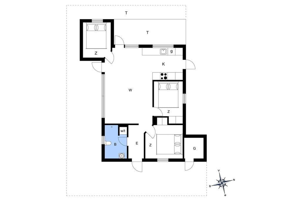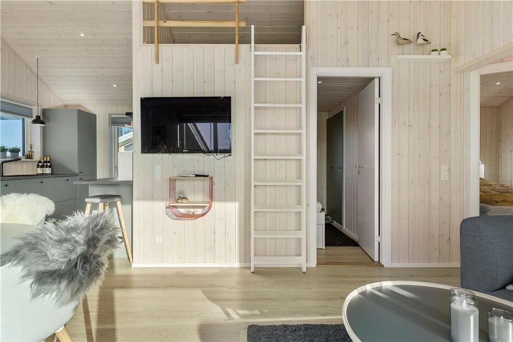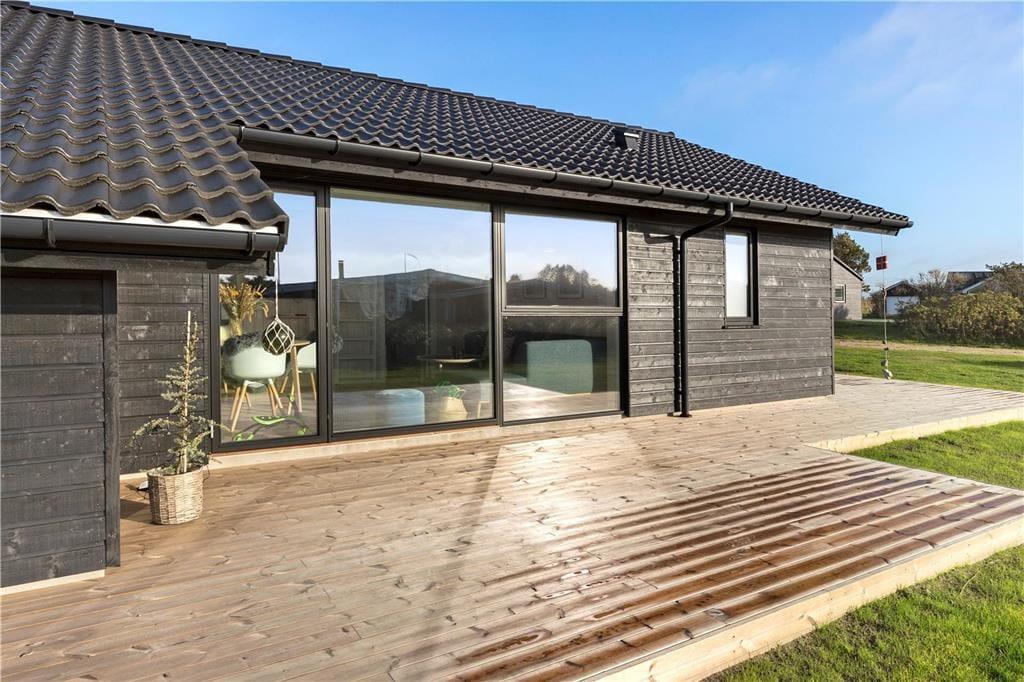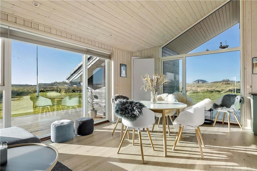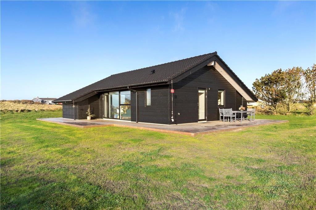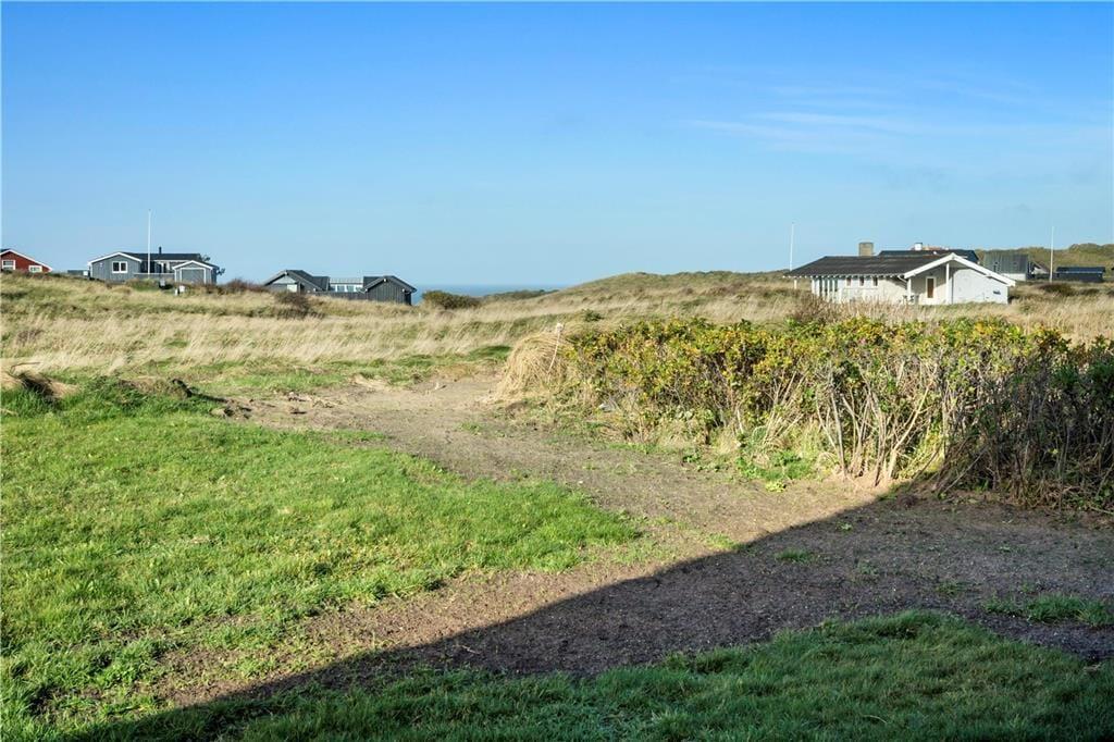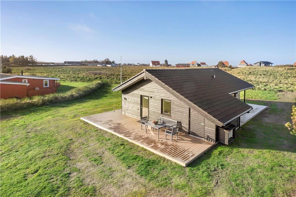 Sommerhuset er opført i 2020 og er udstyret med mange lækre og komfortable detaljer – inklusiv TV med Chromecast, varmepumpe og gode hvidevarer i det flotte åbne køkken. Og selvom indretningen er moderne, emmer rummene af klassisk sommerhusatmosfære takket være alt, lige fra de lyse trævægge til nipsgenstandene i vinduerne. I bliver desuden mindet om, at I befinder jer på vestkysten, når I sidder i stuen, for bag kvarterets sommerhuse og bløde bakker lyser Vesterhavet op. Udover stue og køkken byder sommerhuset på tre gode soveværelser og et badeværelse med vaskefaciliteter og bruseniche med rainshower.