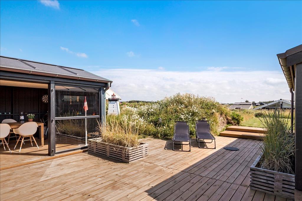 Glæd jer til at holde ferie her! Dette sommerhus er flot renoveret og stilfuldt indrettet, og så har det en skøn udsigt mod havet og Lønstrups stejle kyststrækning.