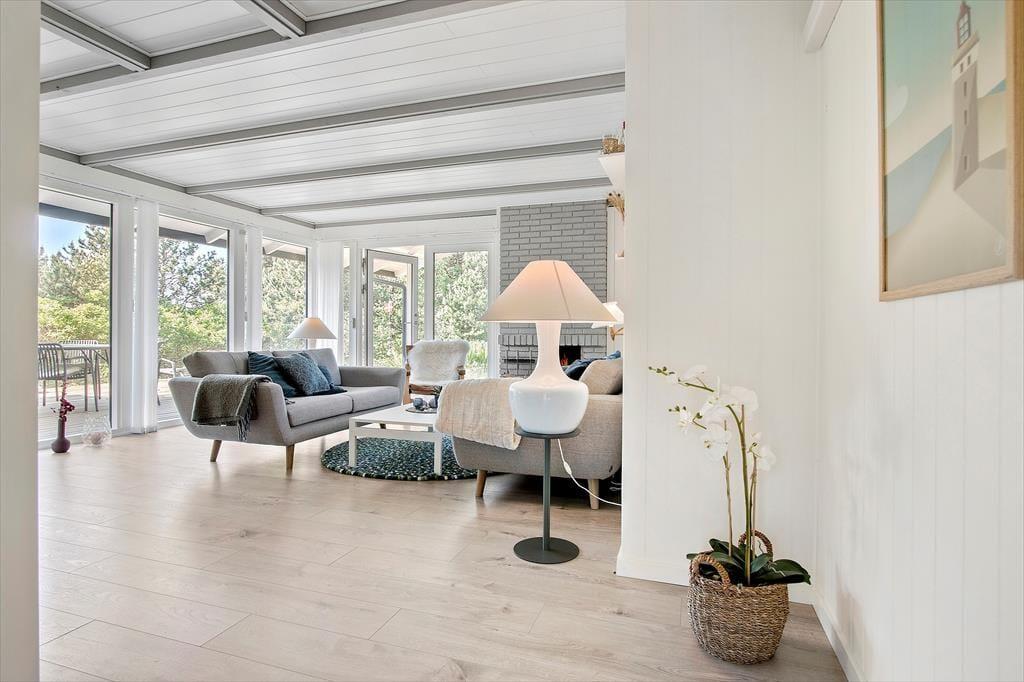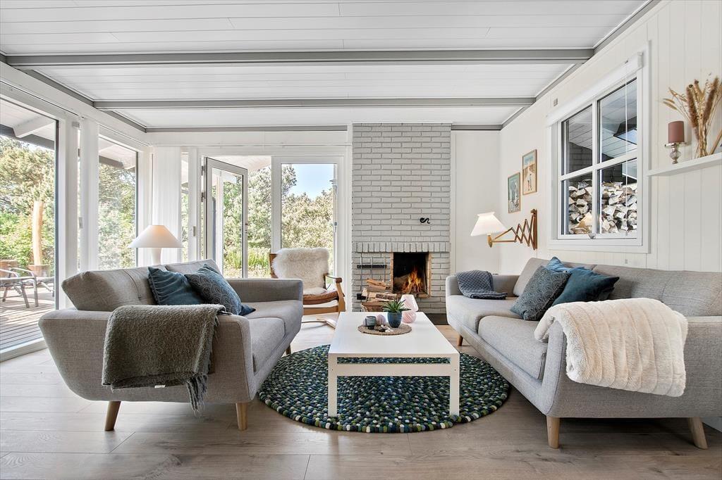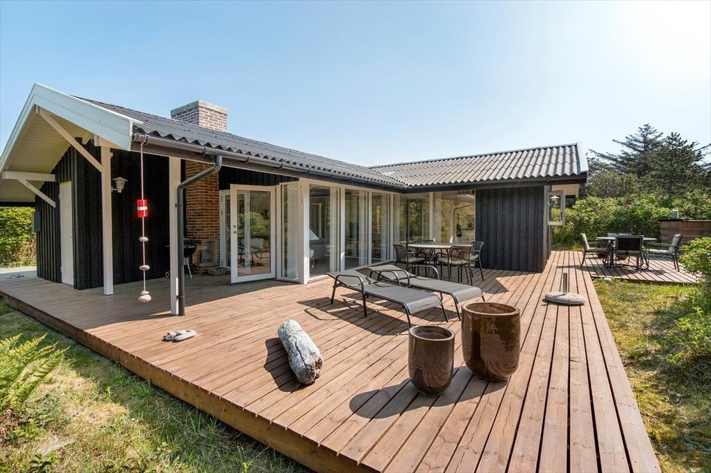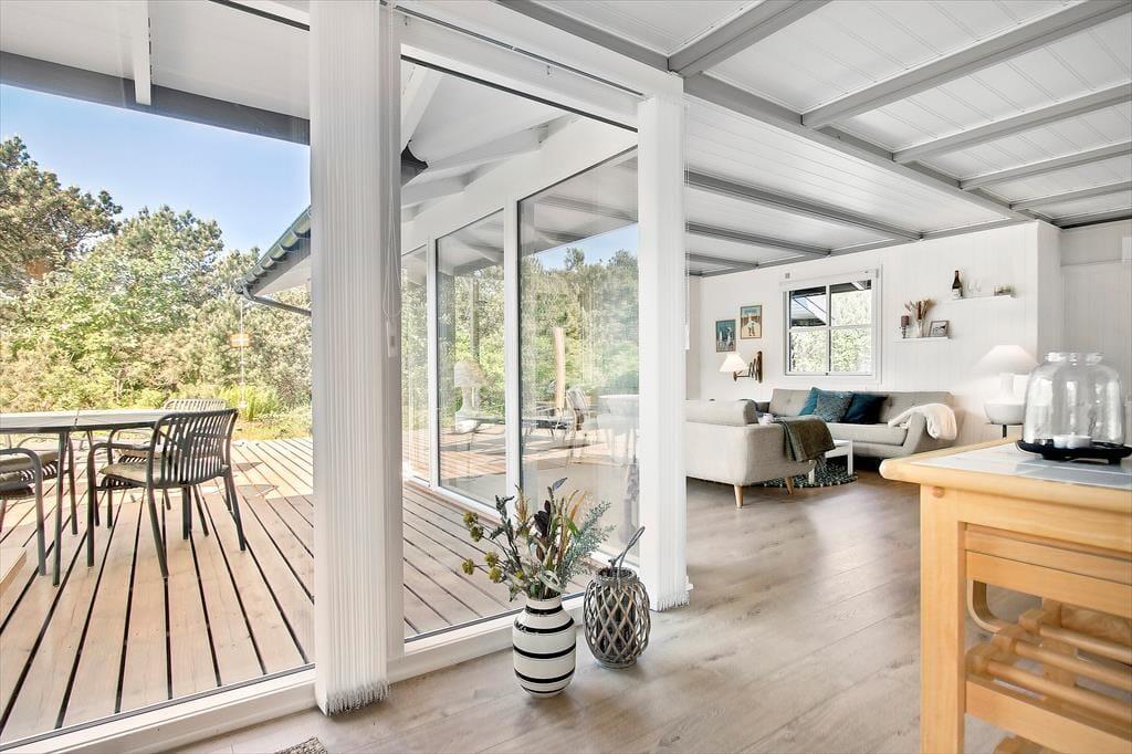 Sofahygge nær pejsen, solbadning på den læ fyldte terrasse og gåture langs med stranden. Uanset vejret og årstiden er der lagt op til den skønneste ferie i dette totalrenoverede sommerhus, der ligger i Harerenden bare 265 meter fra Vesterhavet.