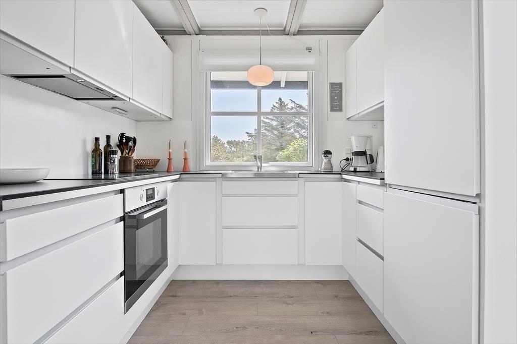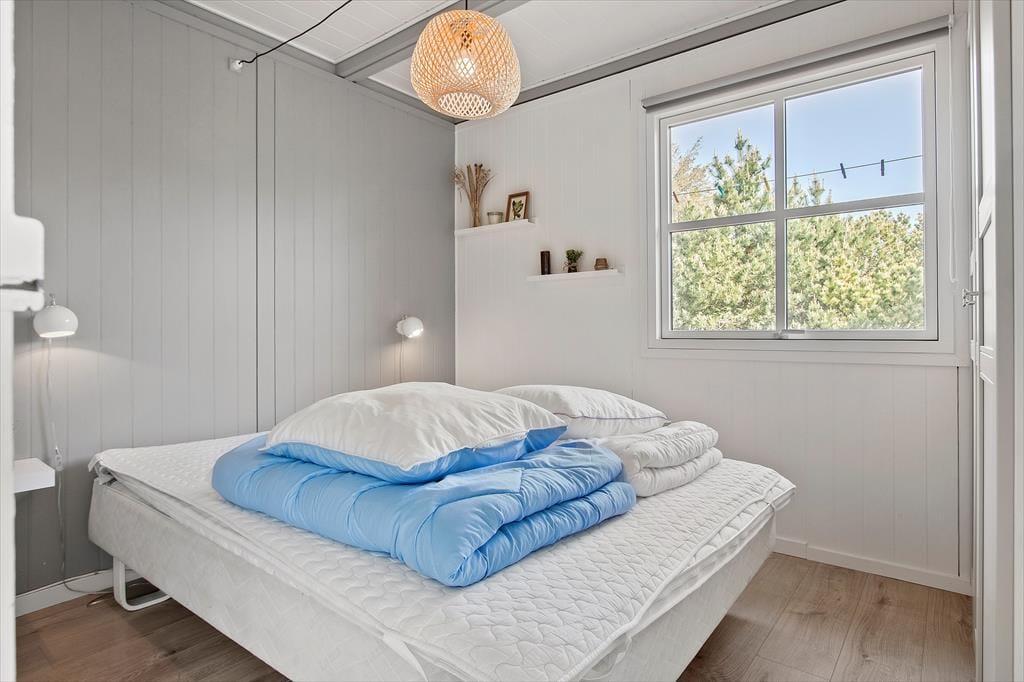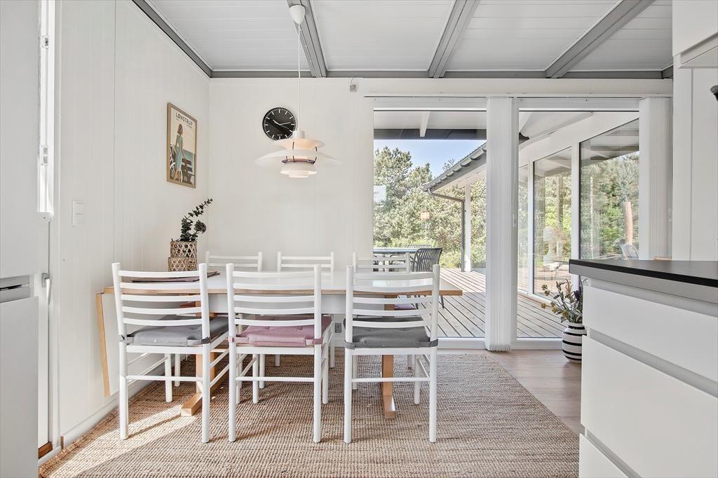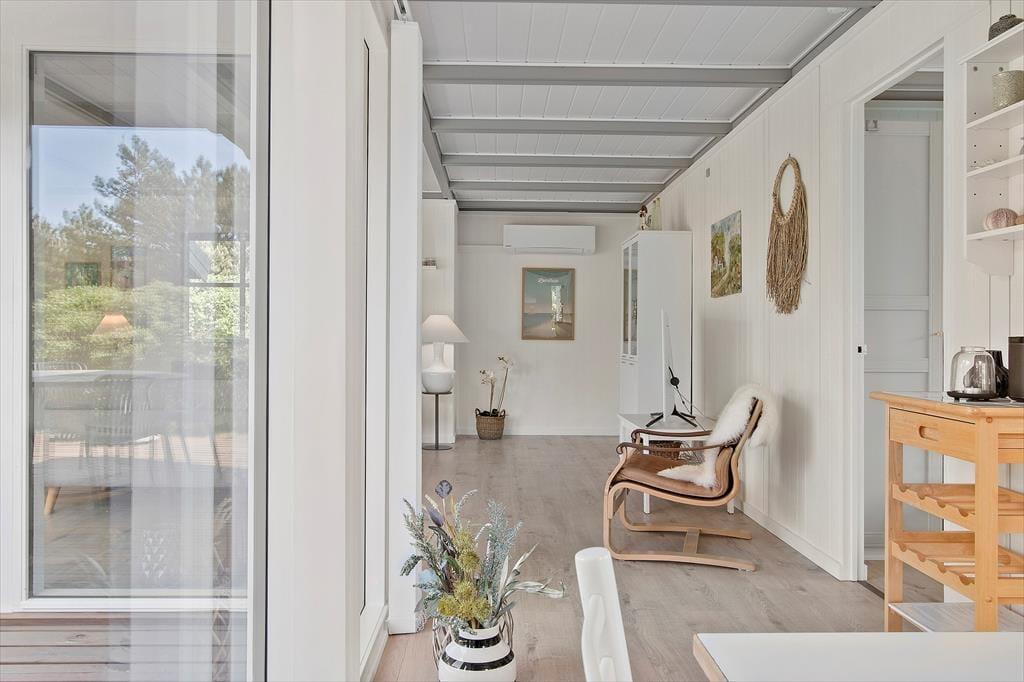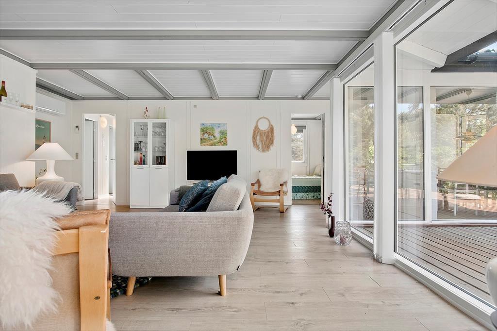 Sofahygge nær pejsen, solbadning på den læ fyldte terrasse og gåture langs med stranden. Uanset vejret og årstiden er der lagt op til den skønneste ferie i dette totalrenoverede sommerhus, der ligger i Harerenden bare 265 meter fra Vesterhavet.