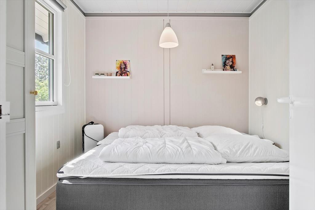 Det sortmalede træsommerhus har ligget her i det smukke kystlandskab i omtrent 50 år, og efter en omfattende renovering i 2022 står det helt klar til at byde feriegæster inden døre. Alt, lige fra vinduer, døre og yderbeklædning til lofter og gulve er blevet udskiftet, og også det velindrettede badeværelse er helt nyt. I de øvrige rum, der inkluderer tre soveværelser og en stue med åben forbindelse til et spisekøkken, har man nøje udvalgt møblementet, så det passer godt ind i de lyse og indbydende omgivelser. Et dejligt lysindfald bidrager til den rare atmosfære i opholdsafdelingen, der har havedøre og store vinduer mod syd og vest, og den åbne pejs inviterer til, at I kryber sammen i sofaen med varm te og gode bøger på eventuelle kølige dage. Trænger I til underholdning, er der fladskærms-tv med Chromecast i stuen, og husets superhurtige wi-fi-forbindelse gør det nemt at streame film og surfe på nettet.